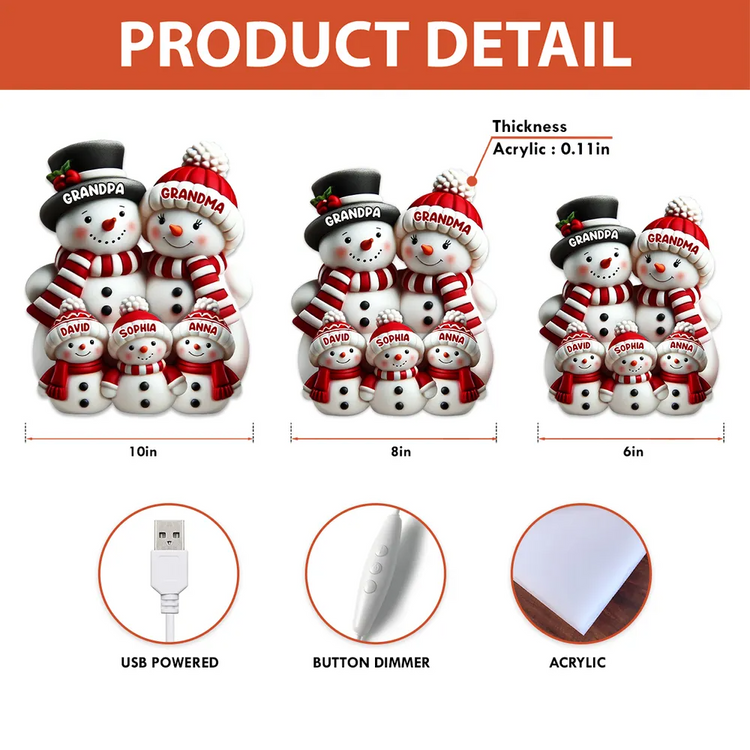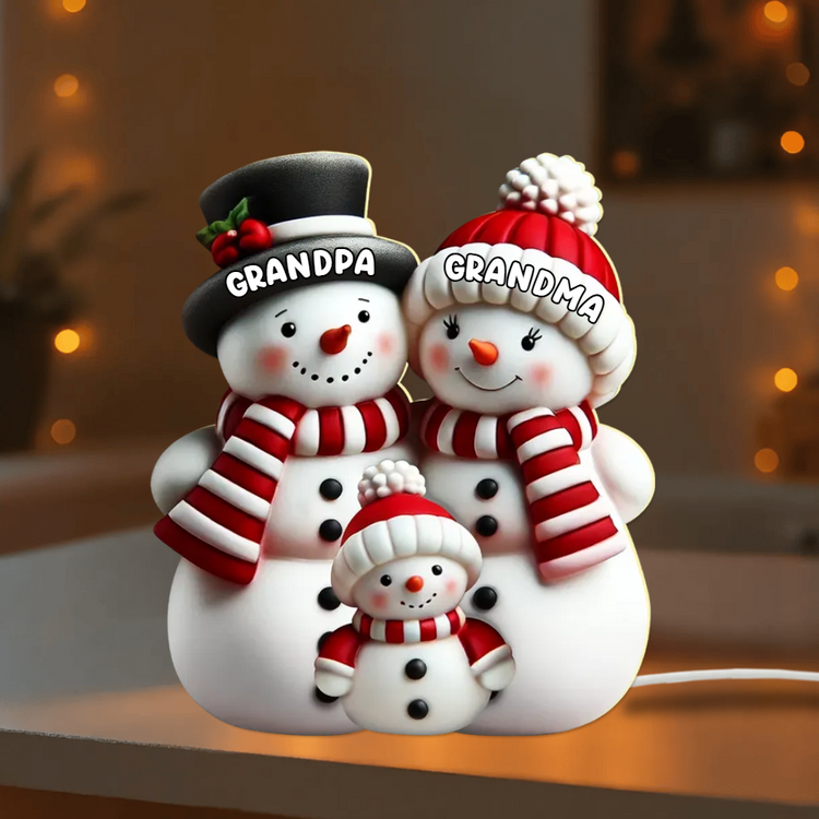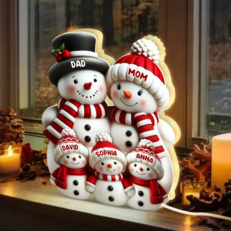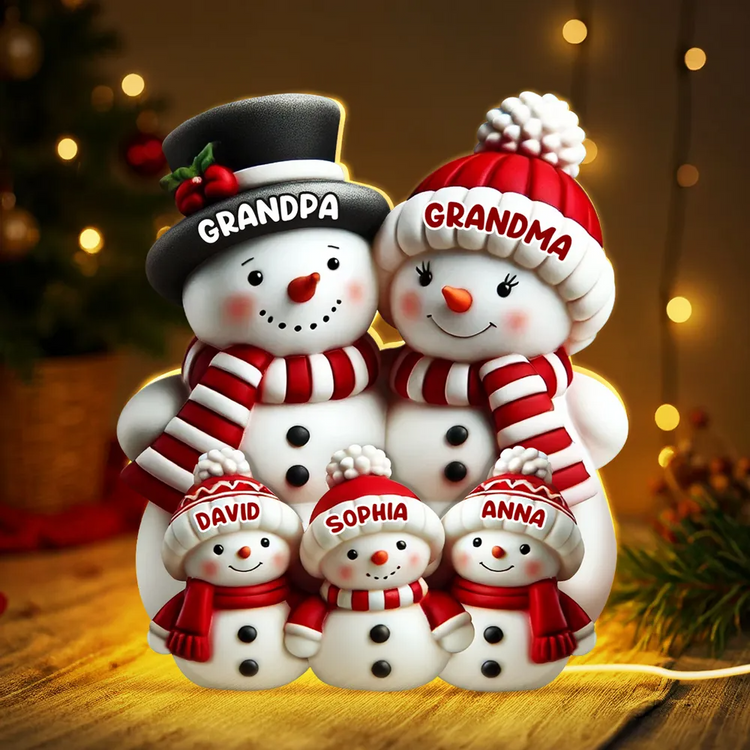 - Brighten your holiday season with a delightful snowman family light box that brings warmth, joy, and togetherness into your home. With its 3D effect and glowing design, this festive piece captures the magic of Christmas while celebrating your loved ones. Personalize it with names to create a keepsake that reflects your family’s spirit, making every moment more meaningful. Perfect for Grandma, Grandpa, and the little ones, this charming light box is a heartwarming way to decorate your home or surprise someone special.