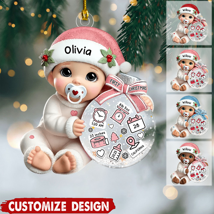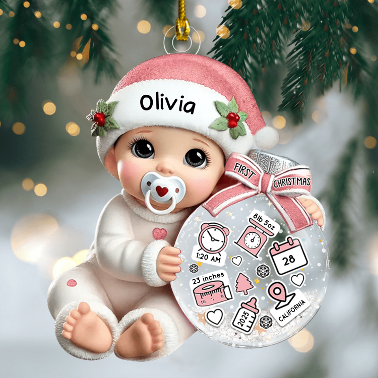 Baby Beside Christmas Bauble – 3D Effect Baby’s First Christmas Personalized Acrylic Flat Ornament, Custom Holiday Keepsake Gift for Newborns Ornament