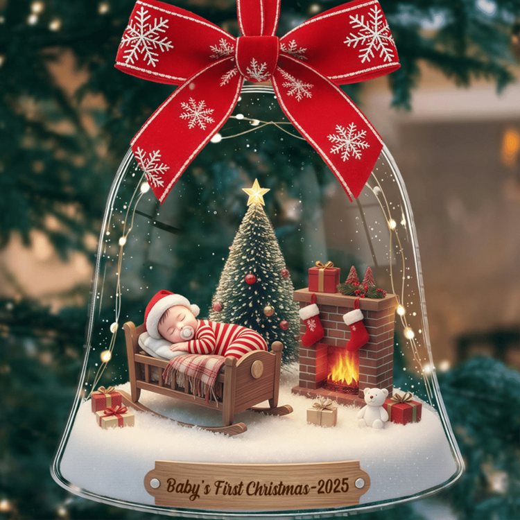 Baby’s First Christmas Ornament 2025 – Personalized Ornament with Sleeping Baby in Crib, Custom Name Christmas Gift