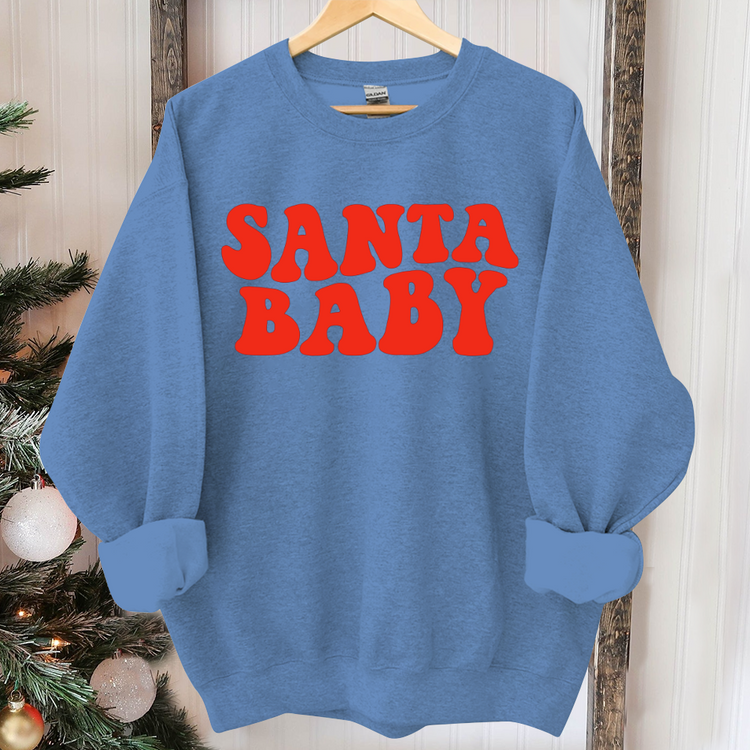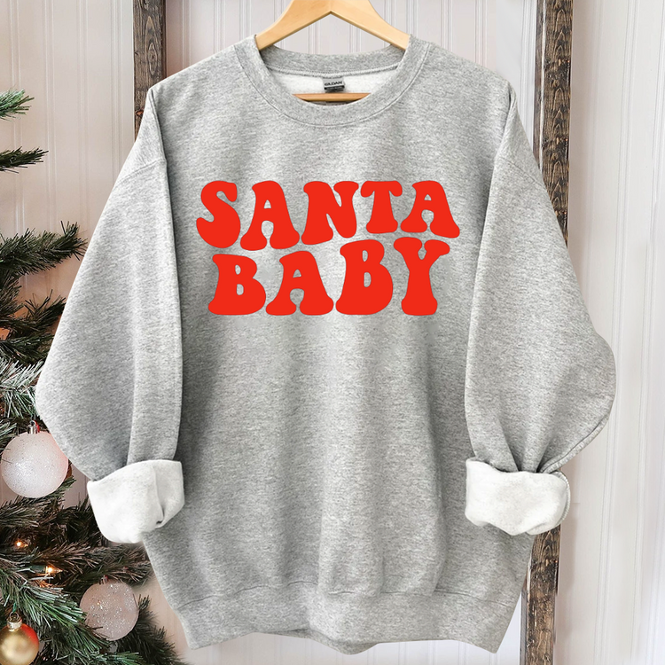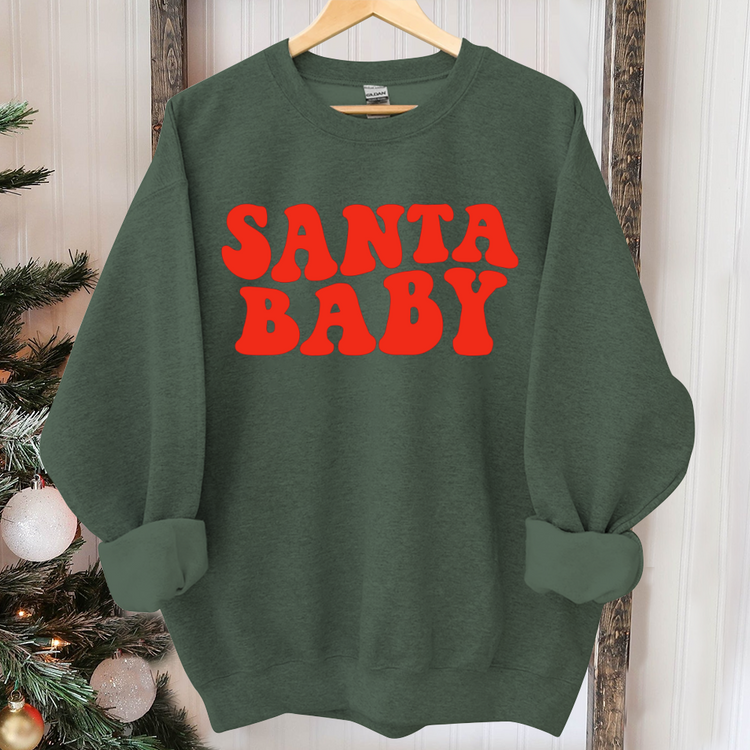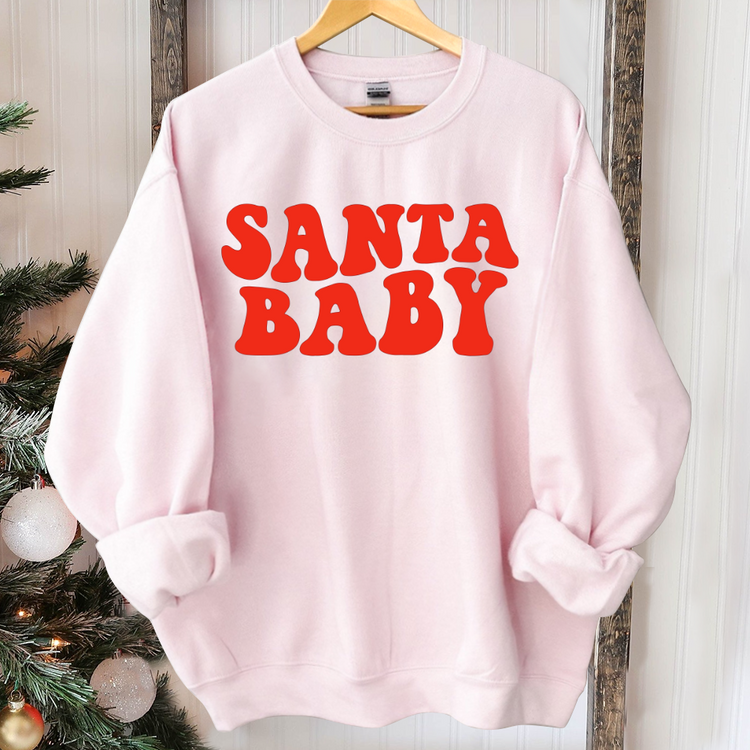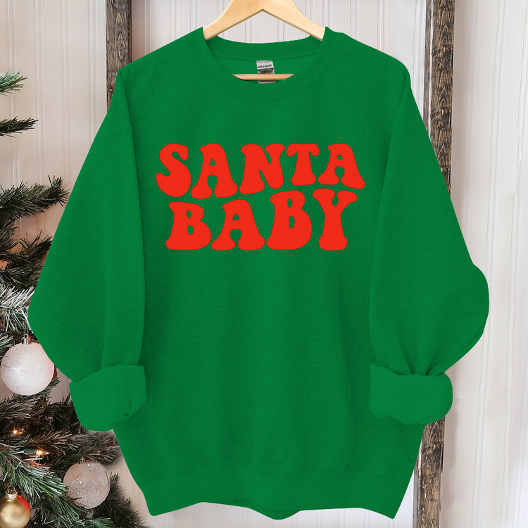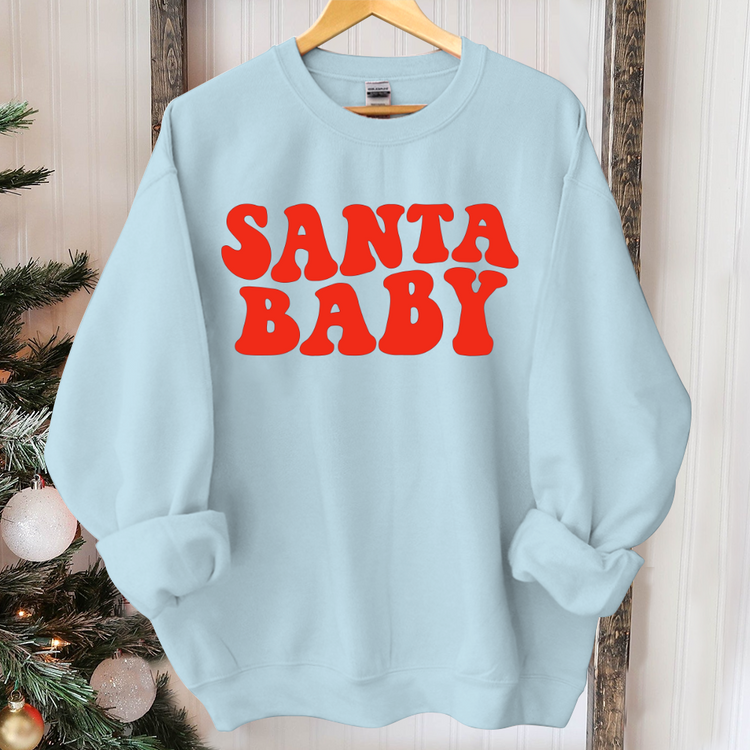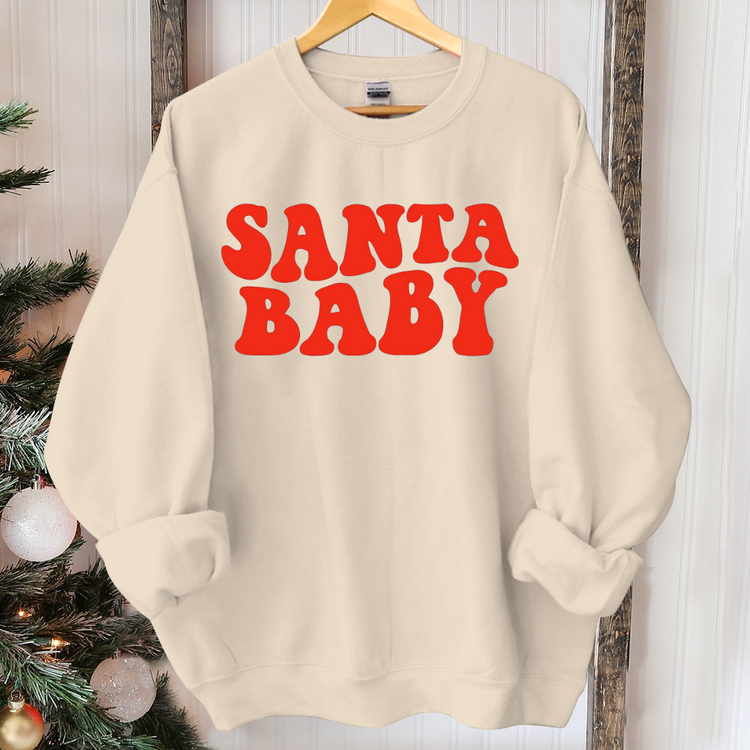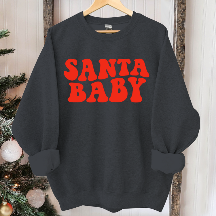Christmas Sweatshirt, Santa Baby Christmas Crewneck Pullover, Holiday Sweaters For Women, Retro Aesthetic Trendy XMAS Outfit Matching Kids
