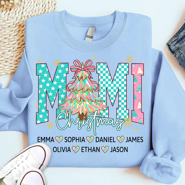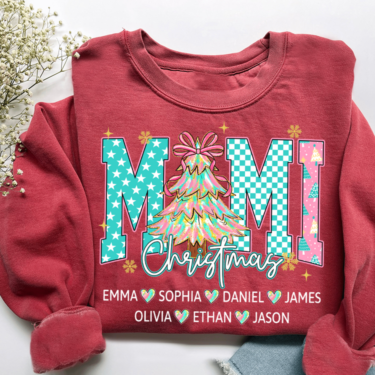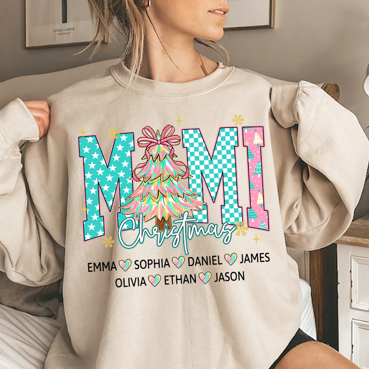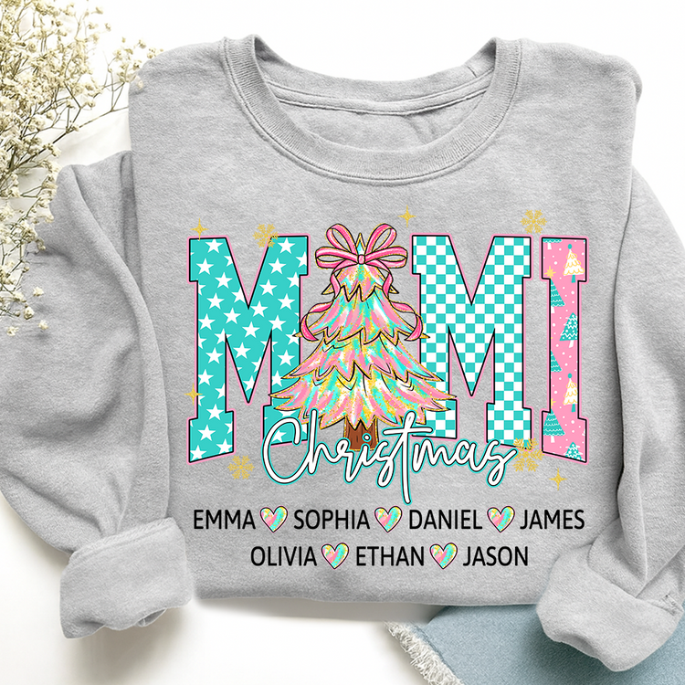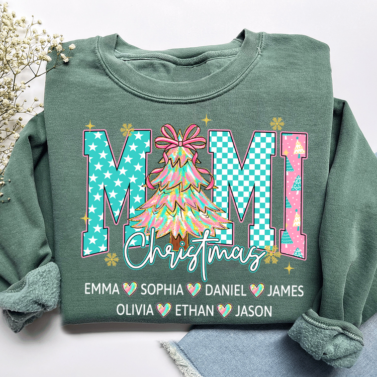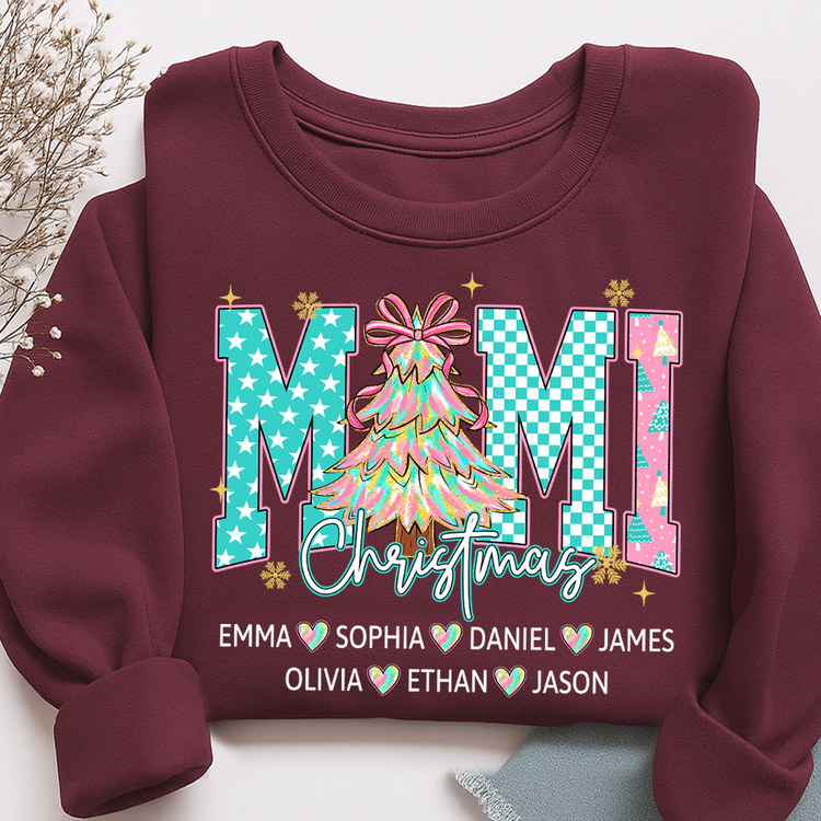 Christmas Tree Mimi Sweatshirt, Custom Family Name for Grandma And Kids