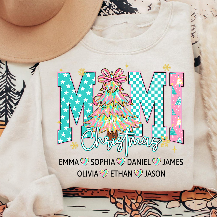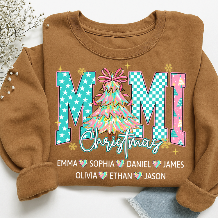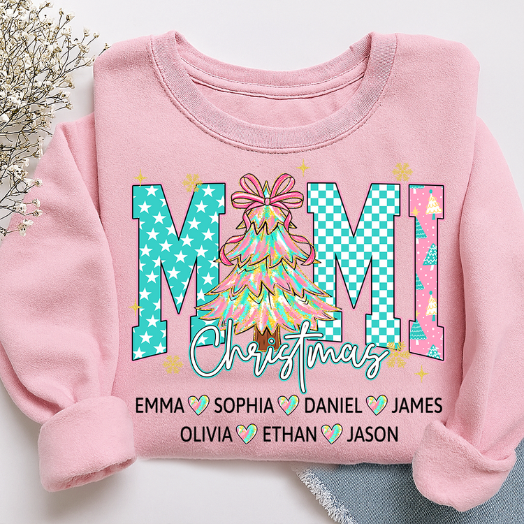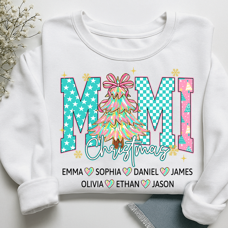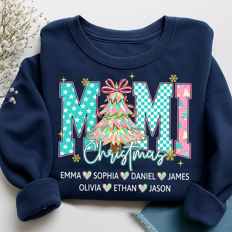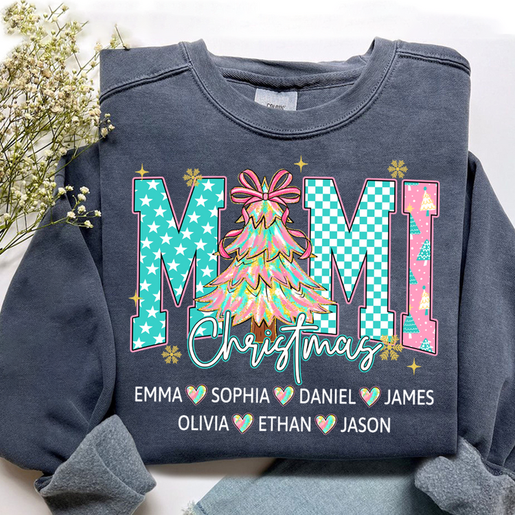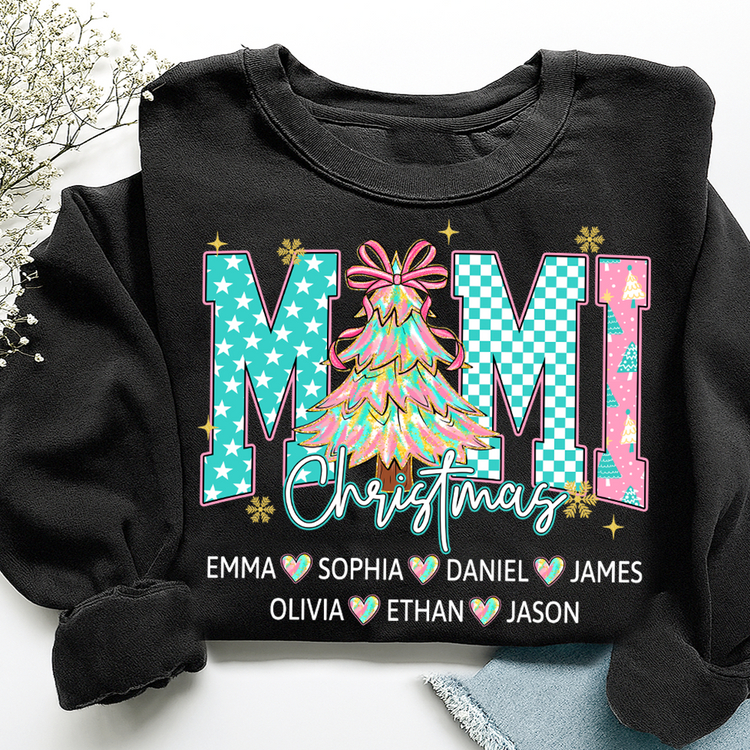Christmas Tree Mimi Sweatshirt, Custom Family Name for Grandma And Kids