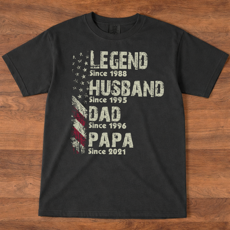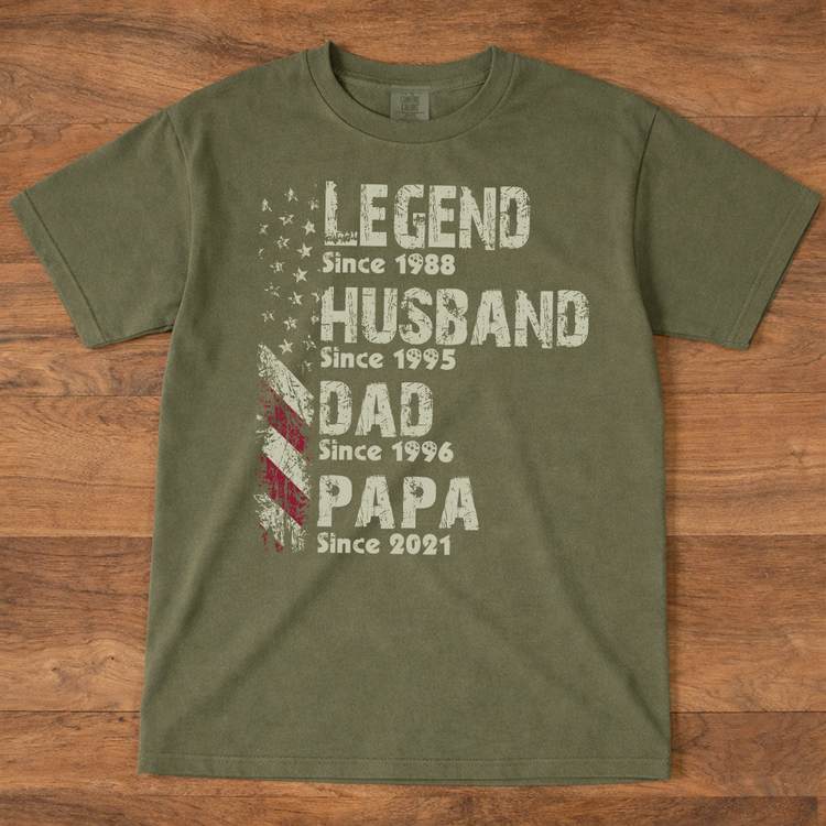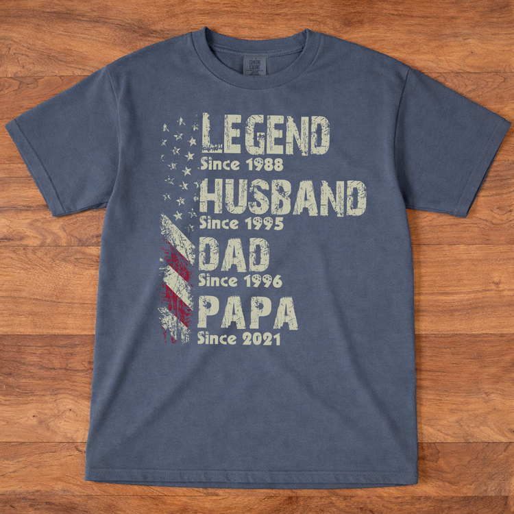 Comfort Colors® Personalized Legend Husband Dad Papa Shirt With Years, Custom Family Timeline T Shirt For Men
