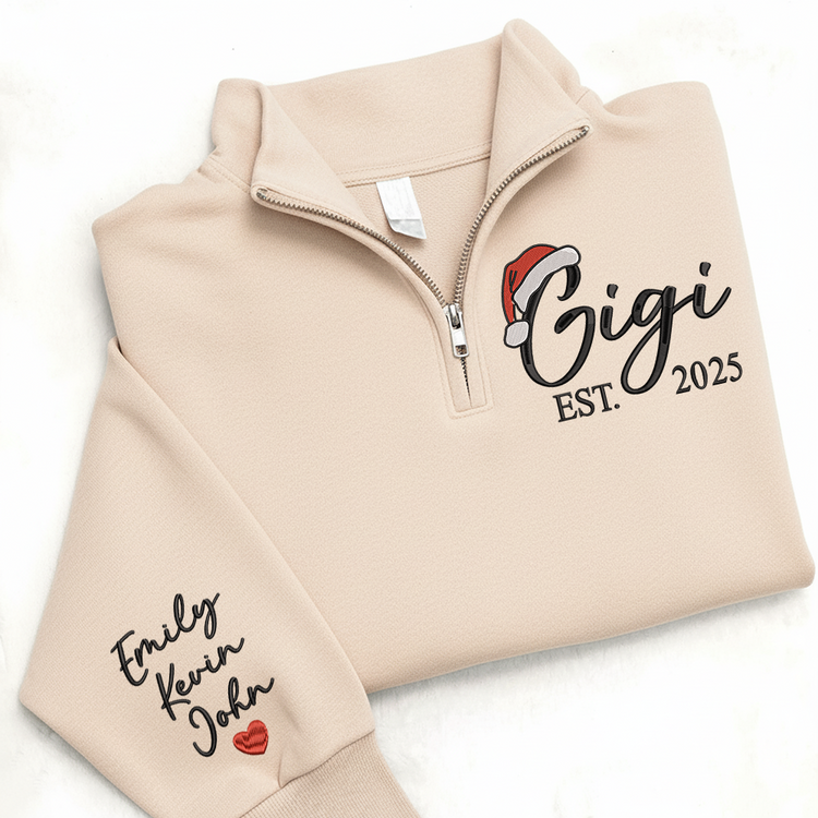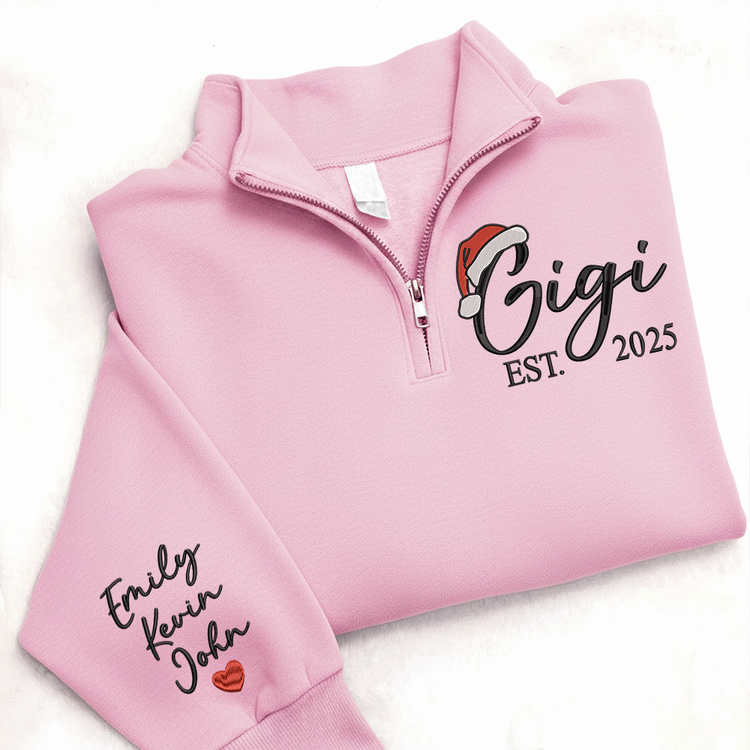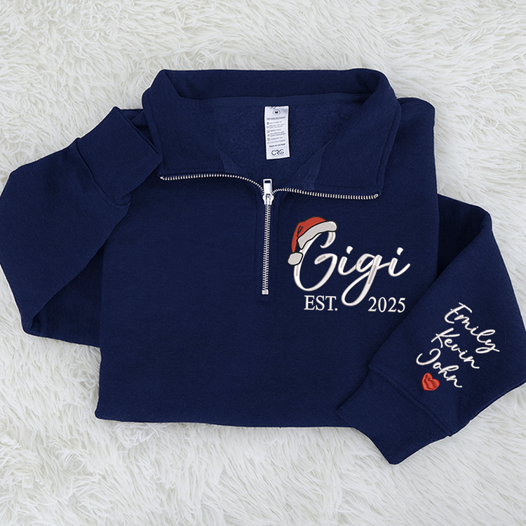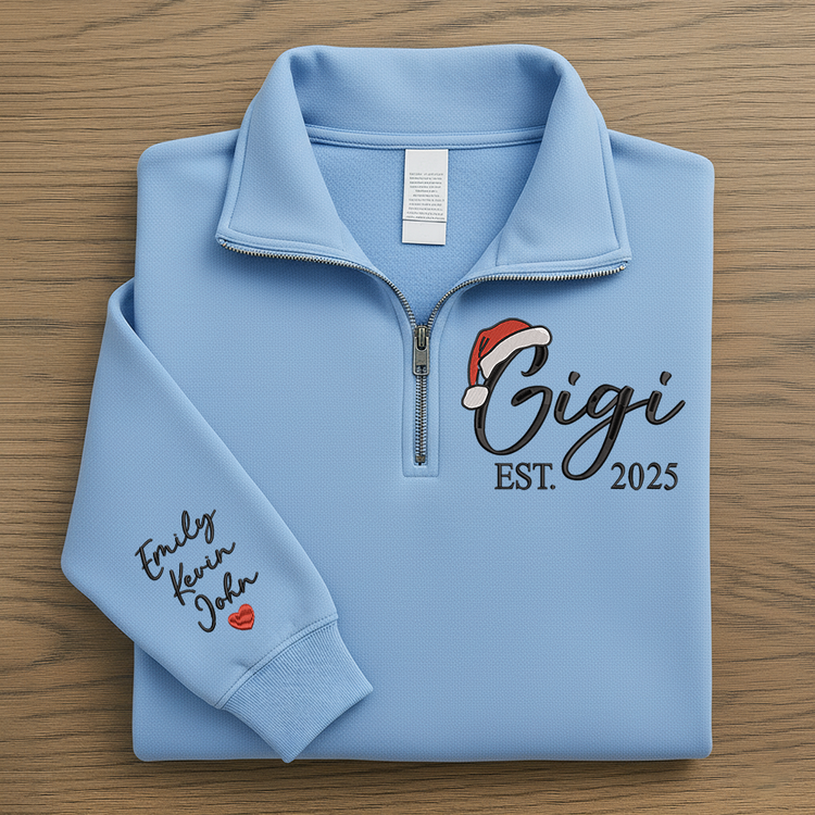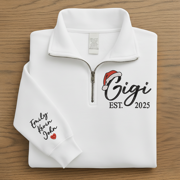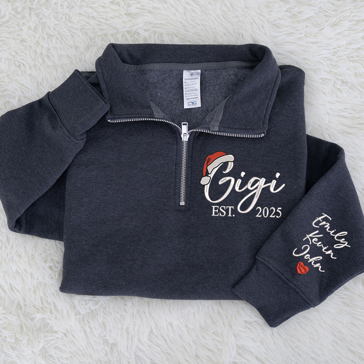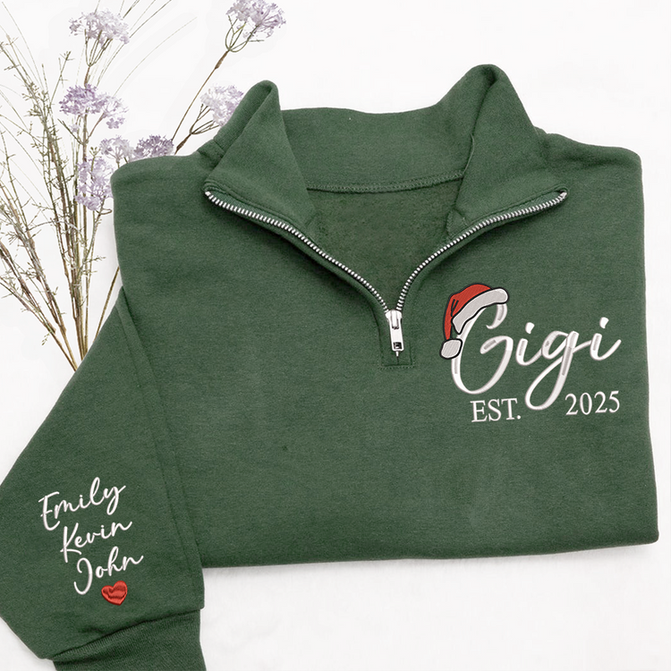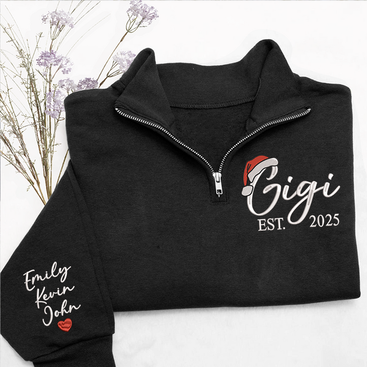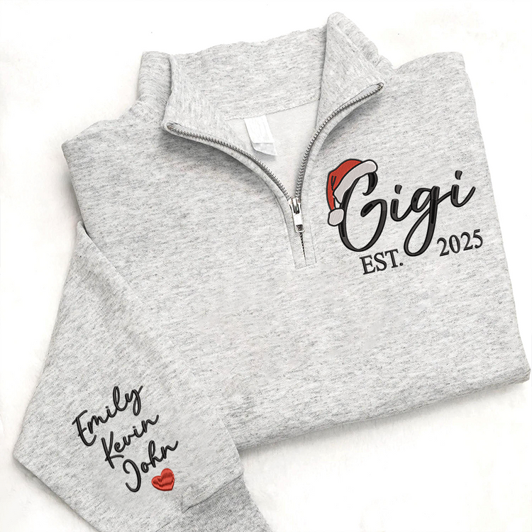 Custom Embroidered Gigi Quarter Zip – Personalized Christmas Sweatshirt With Kids Names, Holiday Gift For Grandma