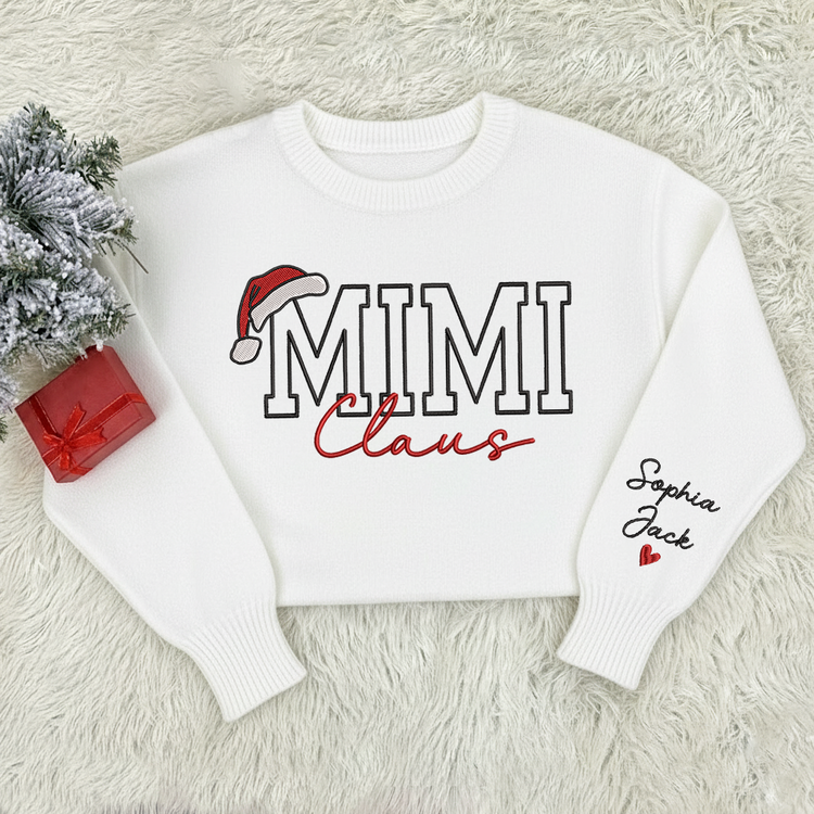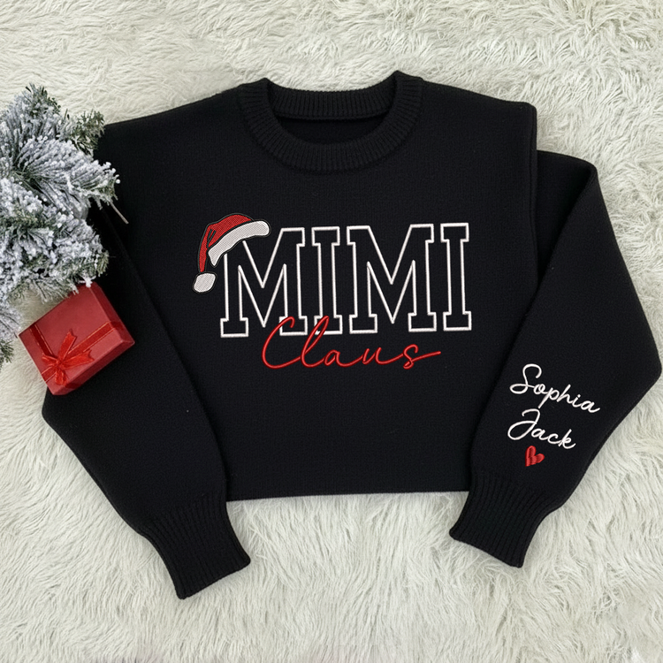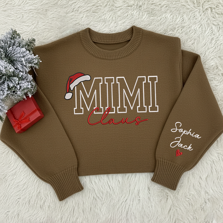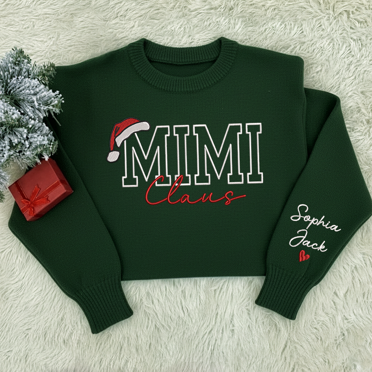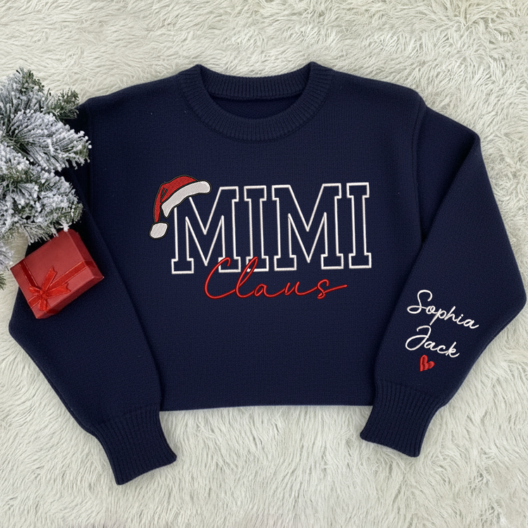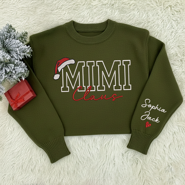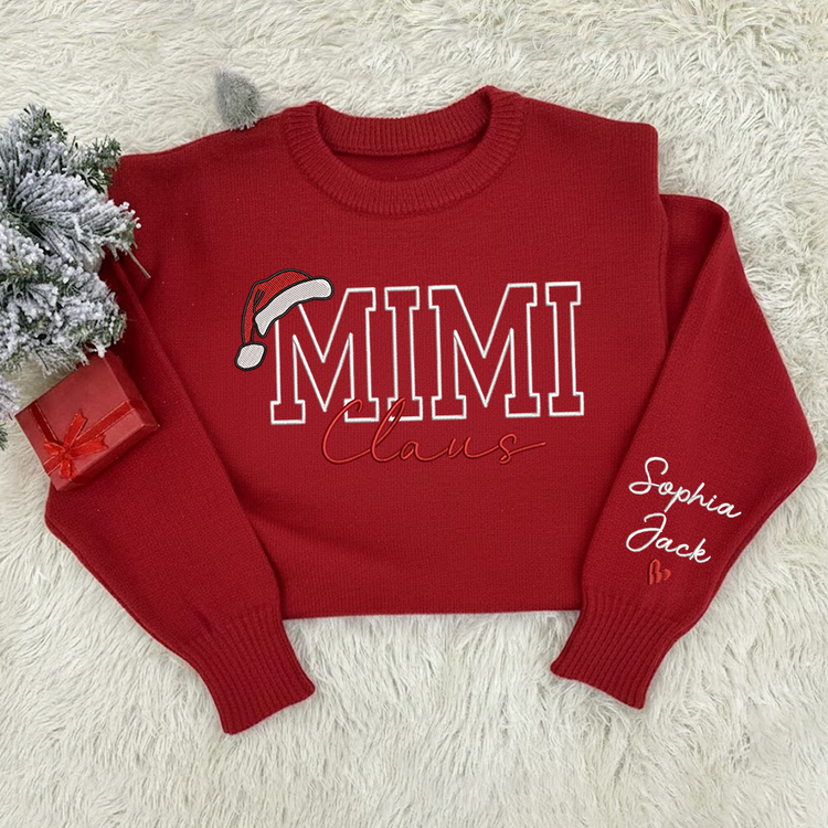 Custom Embroidered Mimi Claus Knit Sweater – Personalized Grandma Christmas Sweatshirt