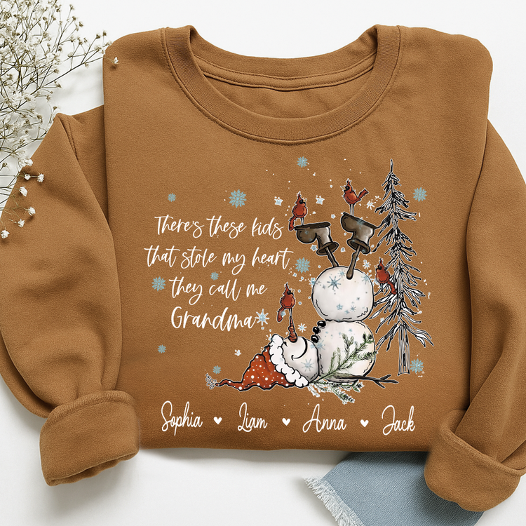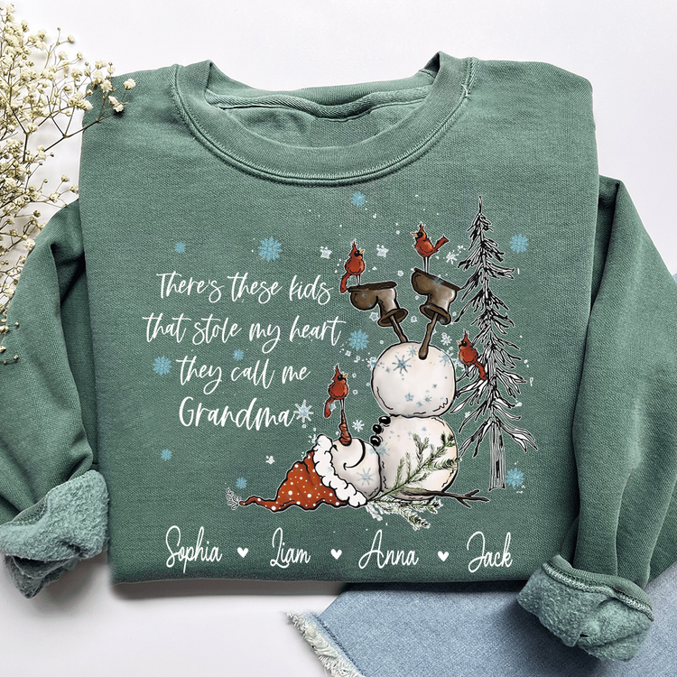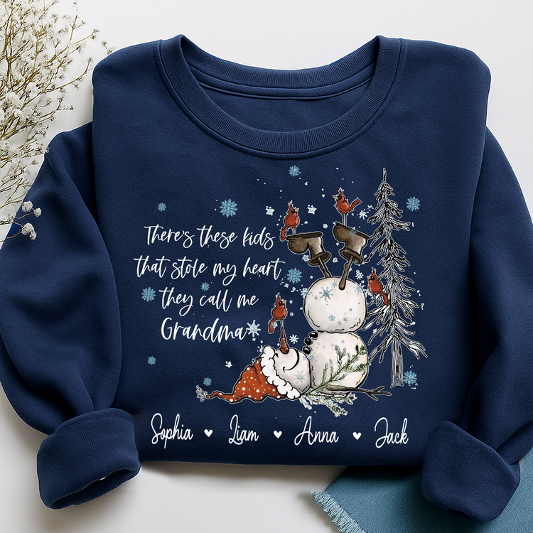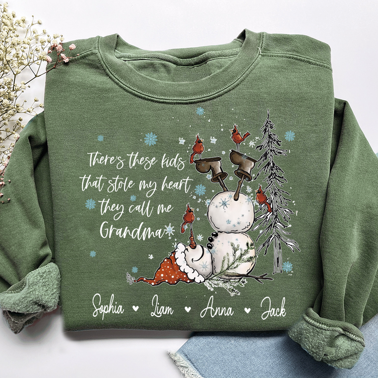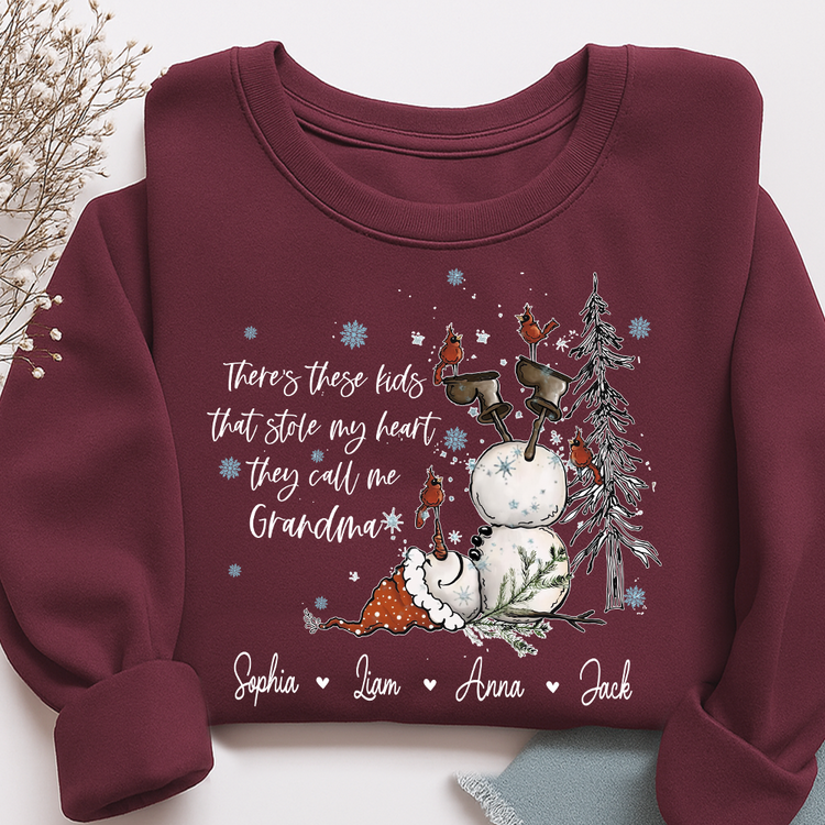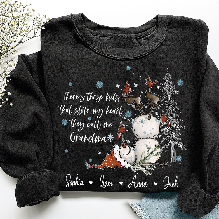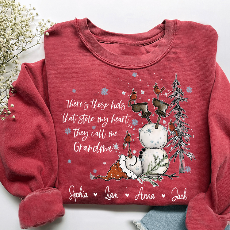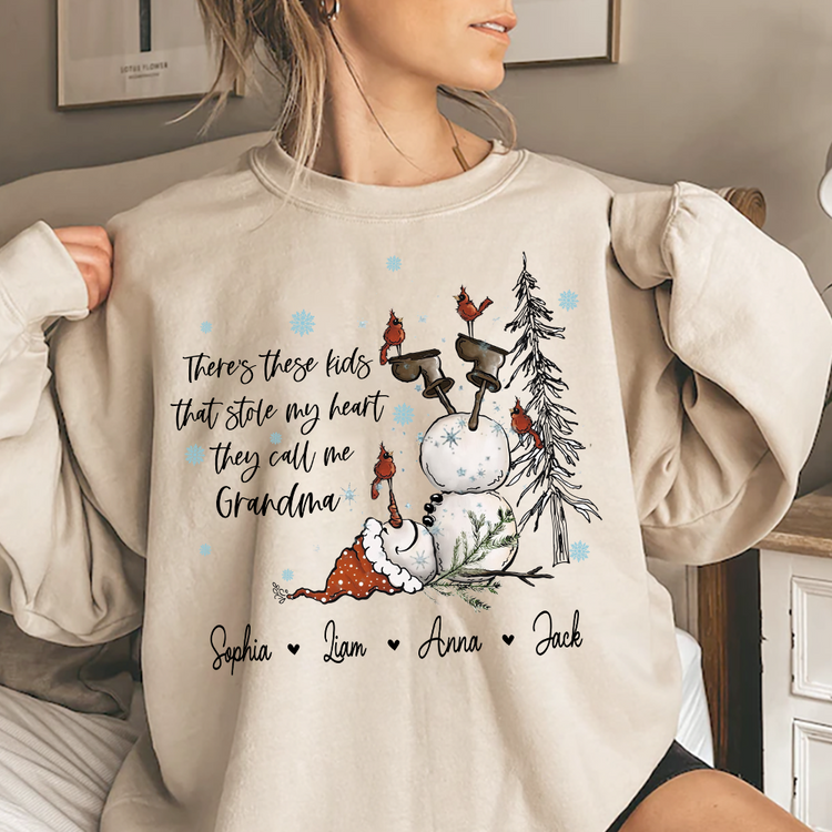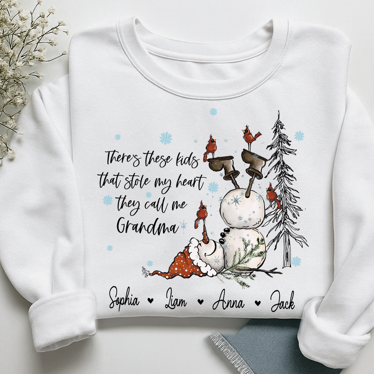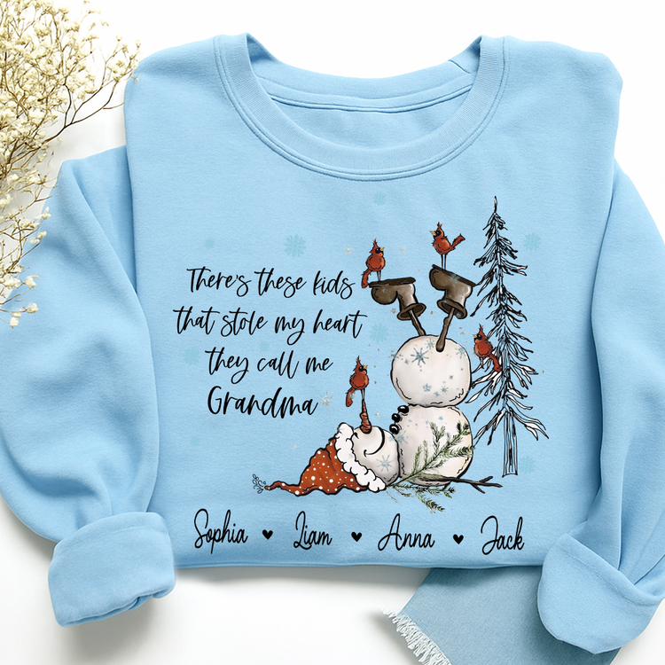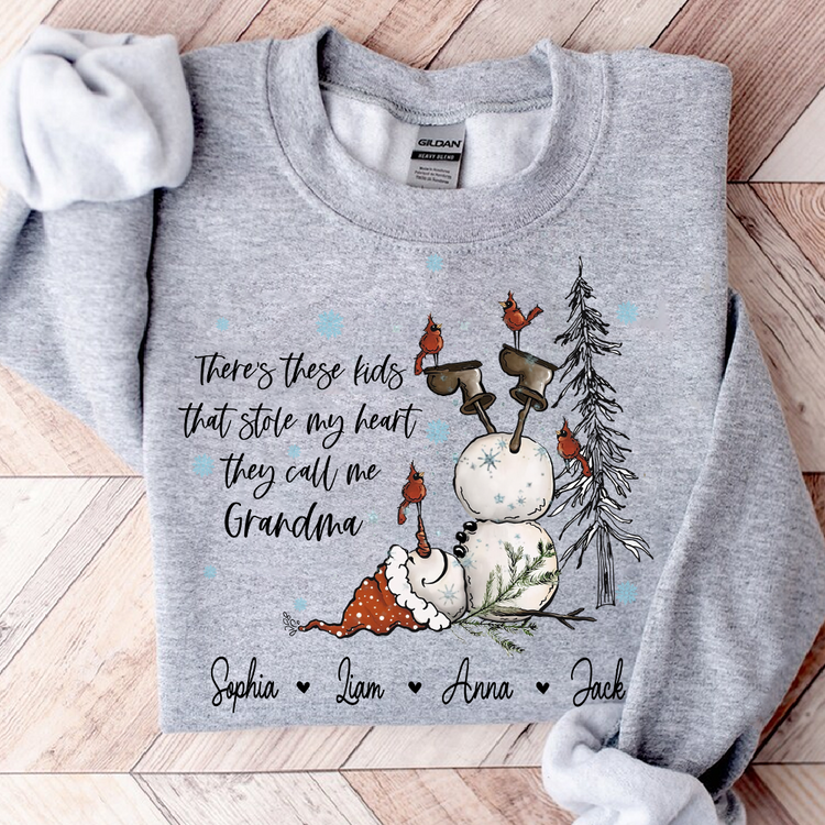 Custom Grandma Snowman Sweatshirt, There’s These Kids That Stole My Heart For Gift Grandma And Kids