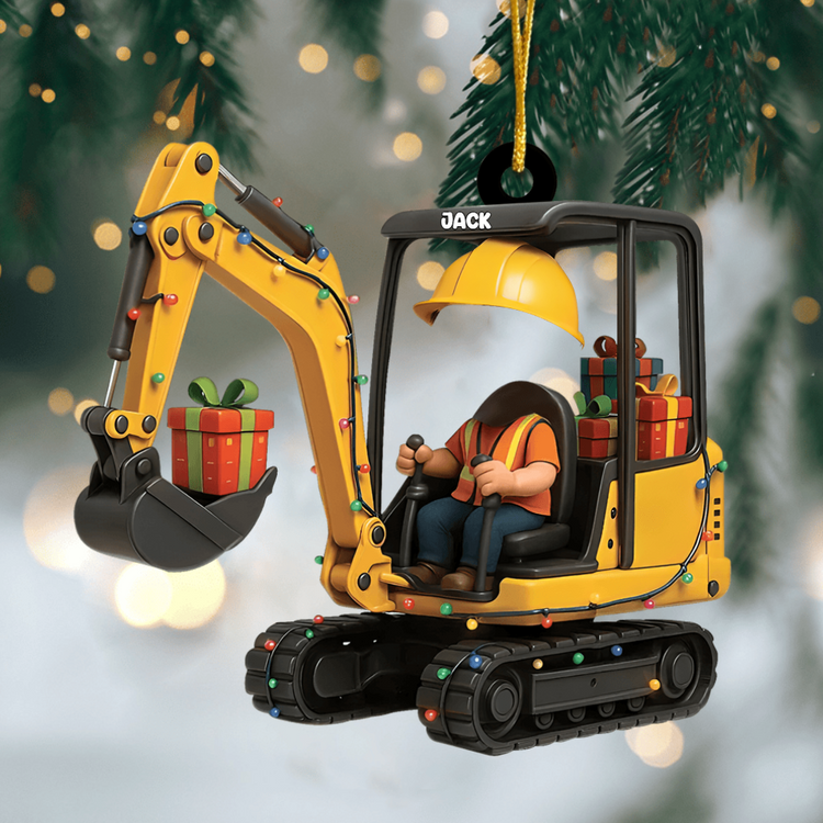 Custom Kid Face Cartoon Excavator Ornament – Personalized Acrylic Decoration, Unique Christmas Gift for Kids and Families Ornament