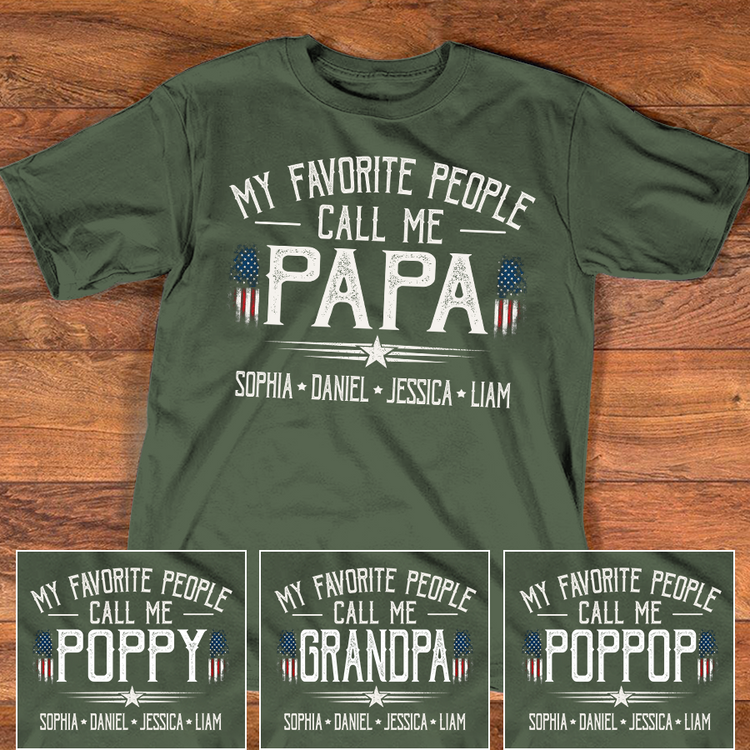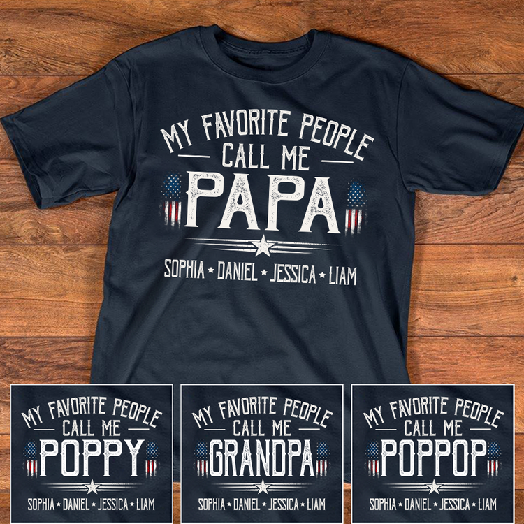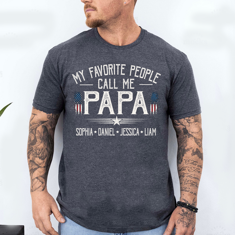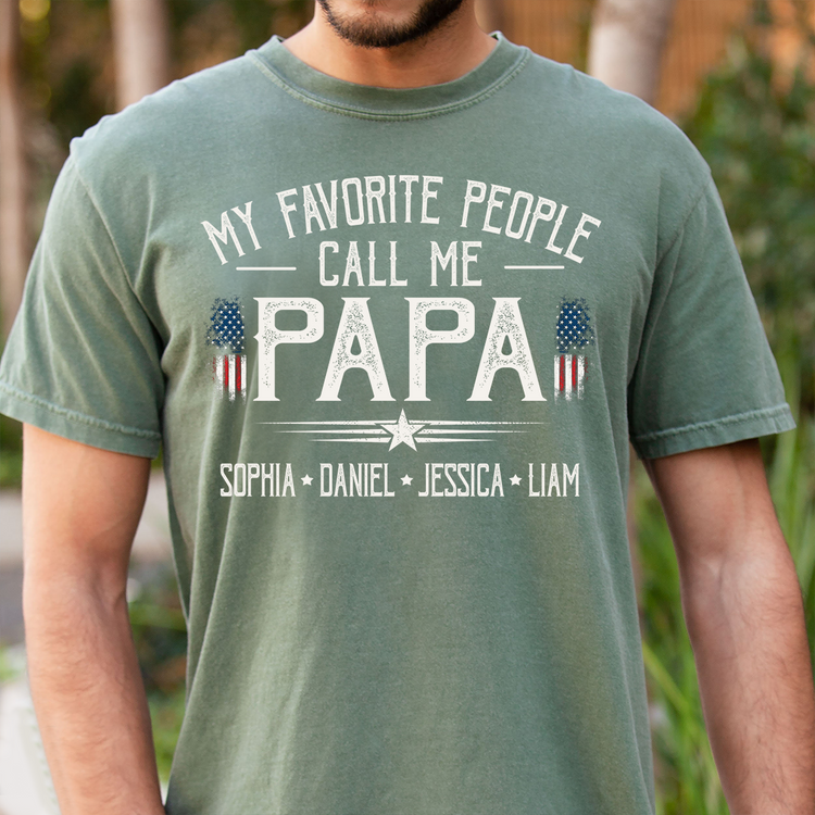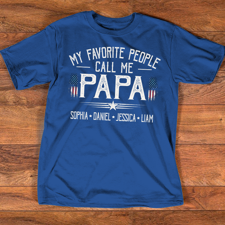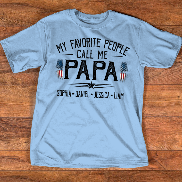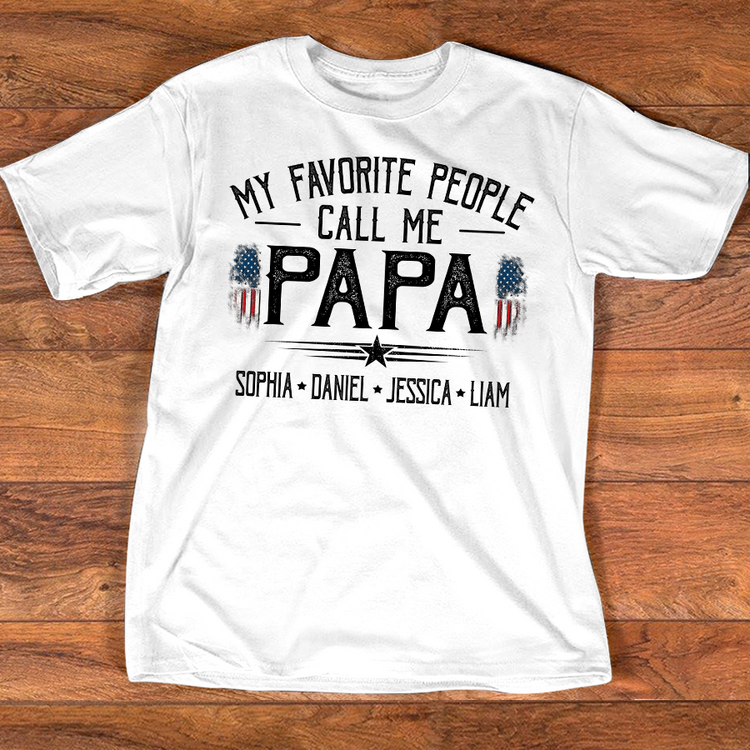 Custom My Favorite People Call Me Papa Shirt, Personalized with Grandkids Names, American Flag Graphic