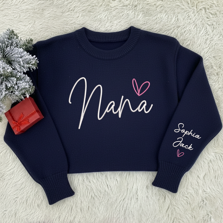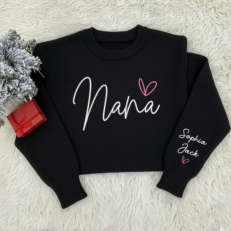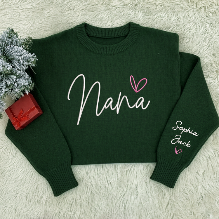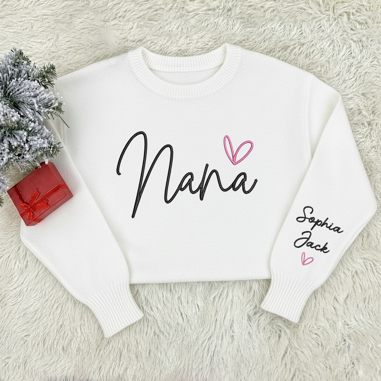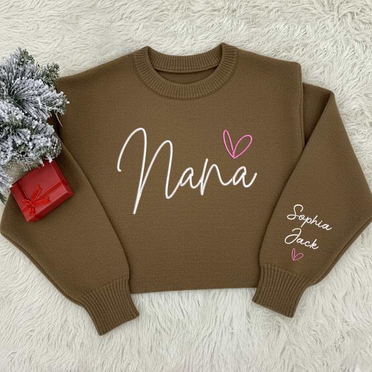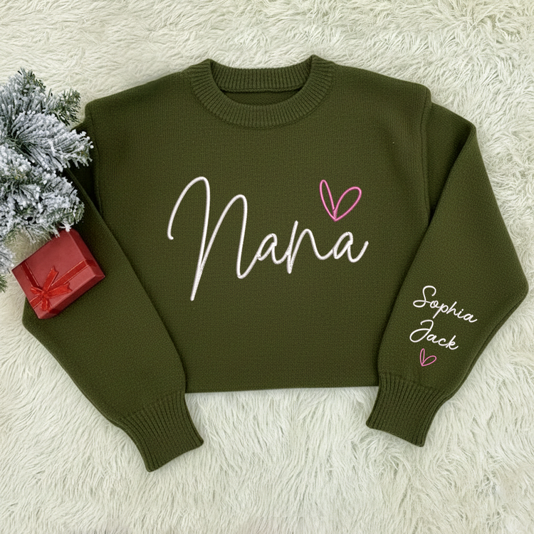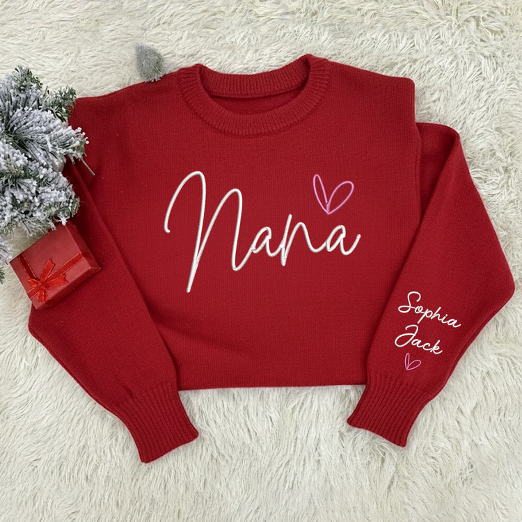 Embroidered Nana Christmas Knit Sweater – Personalized Grandma Sweatshirt With Grandkids Names, Custom Holiday Gift 2025