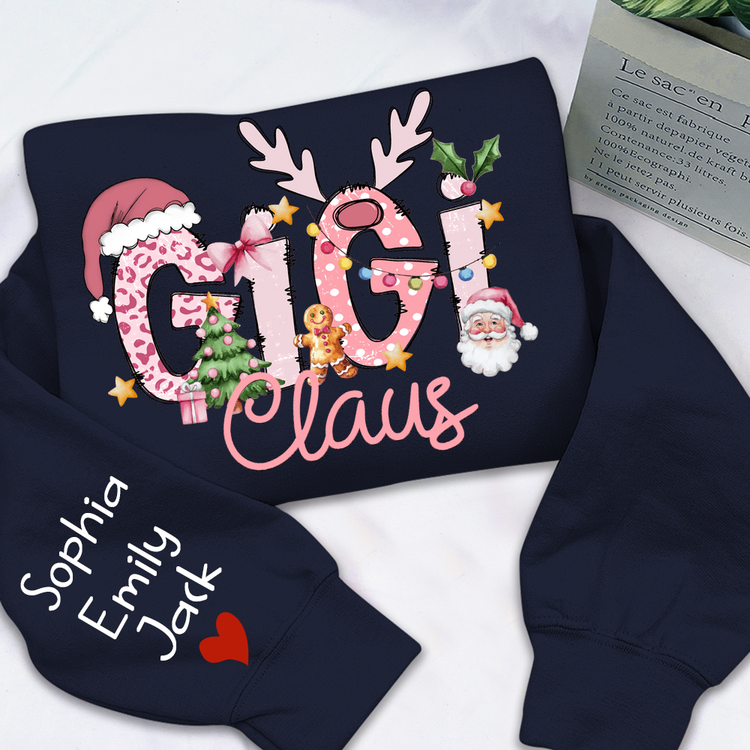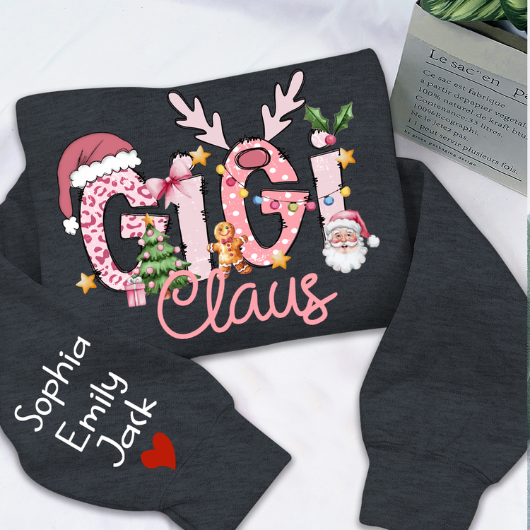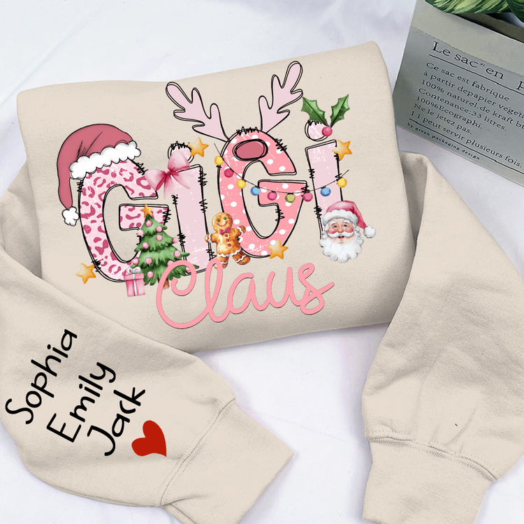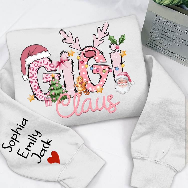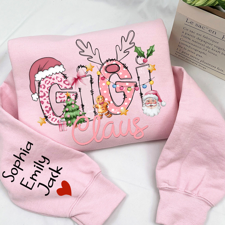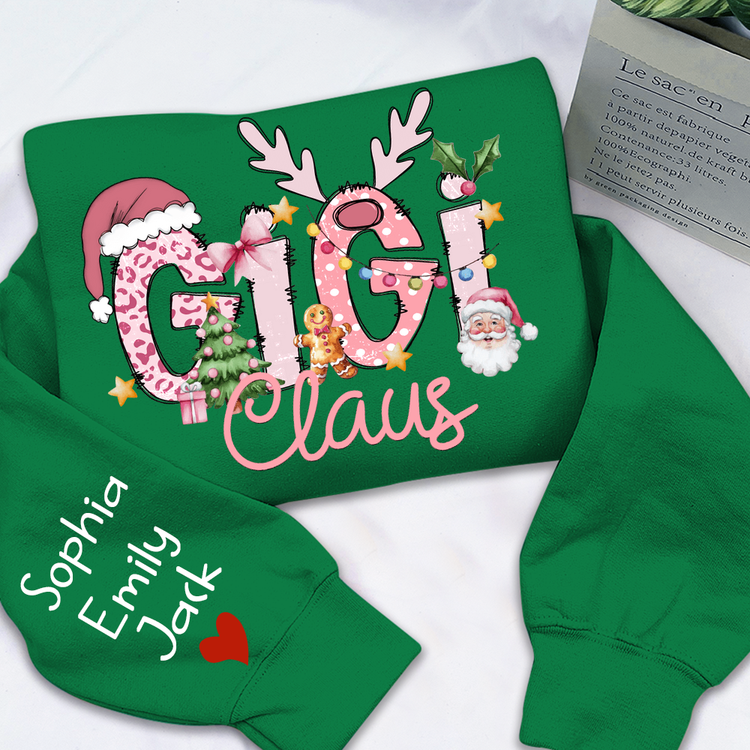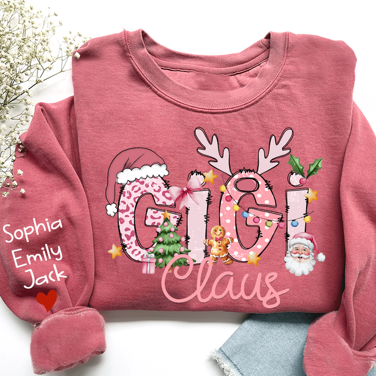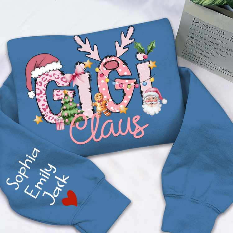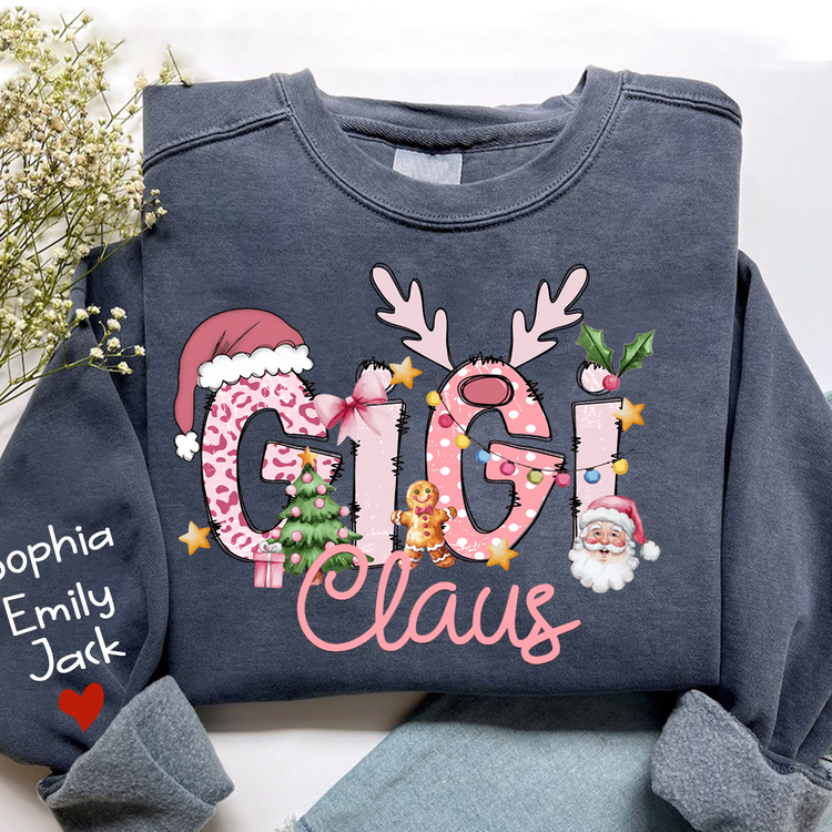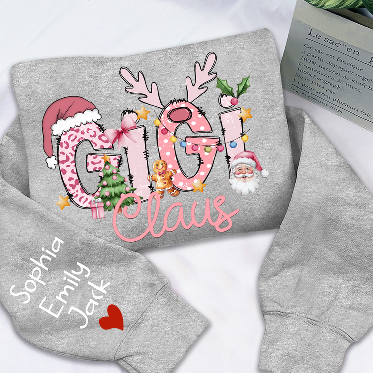 Gigi Claus Christmas Sweatshirt – Personalized Holiday Shirt with Grandkids’ Names