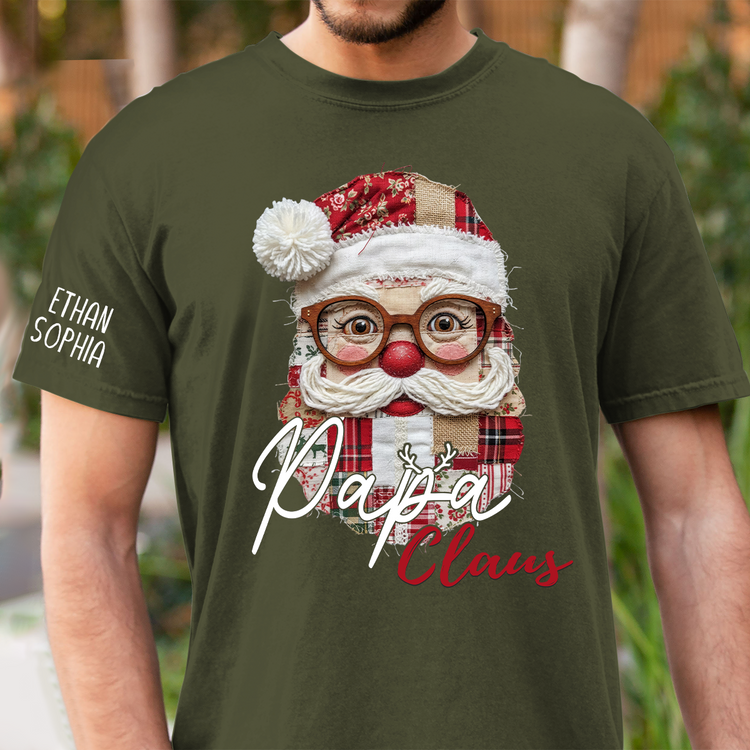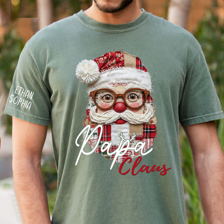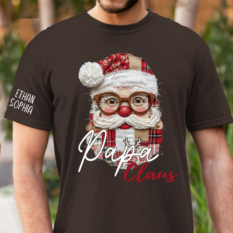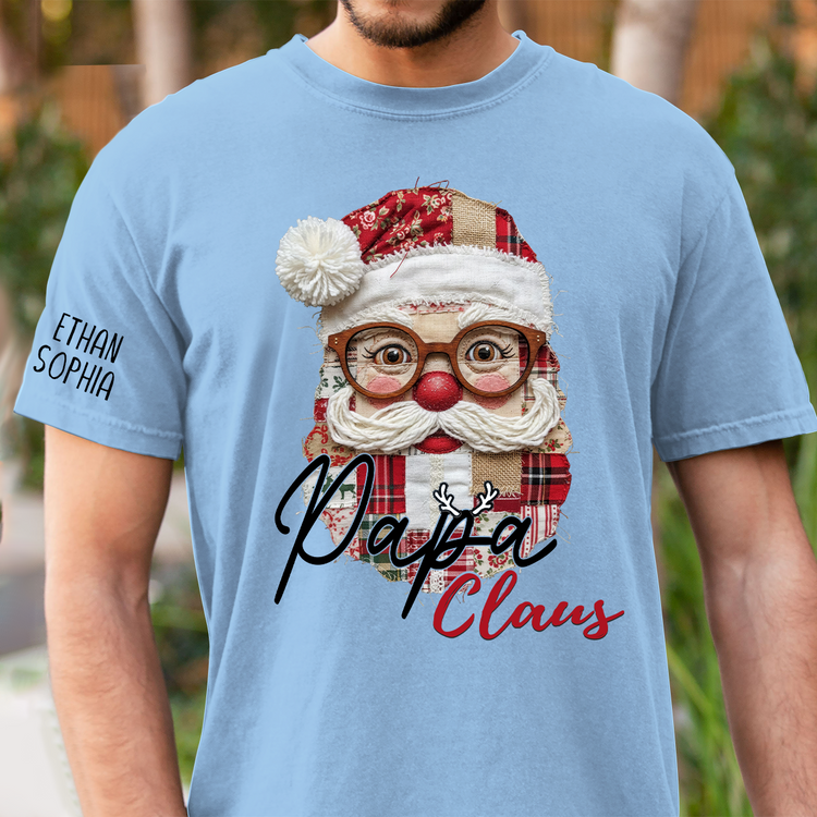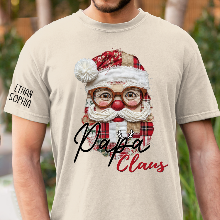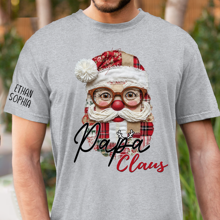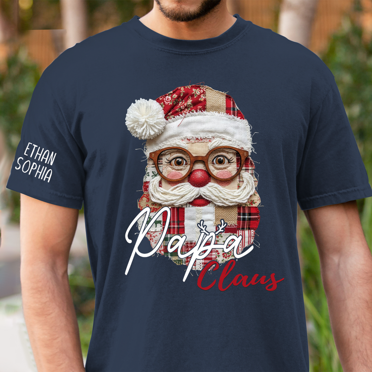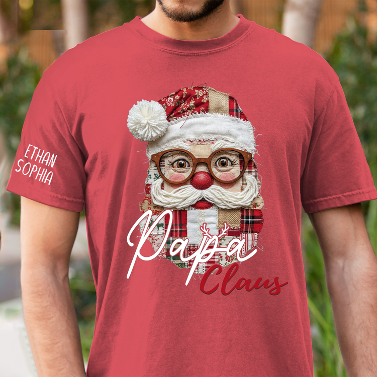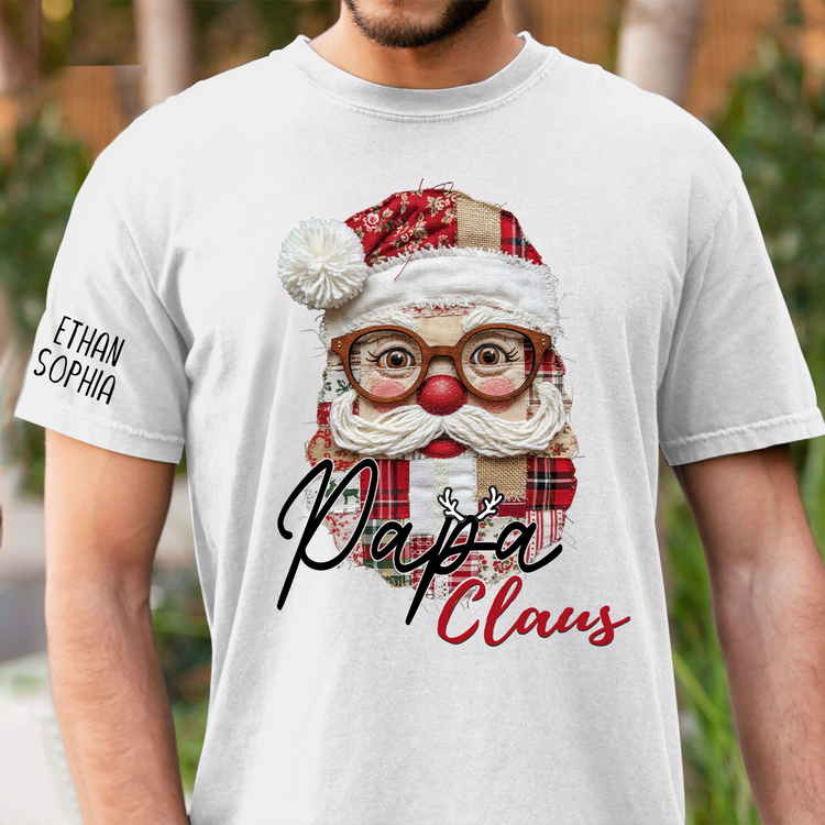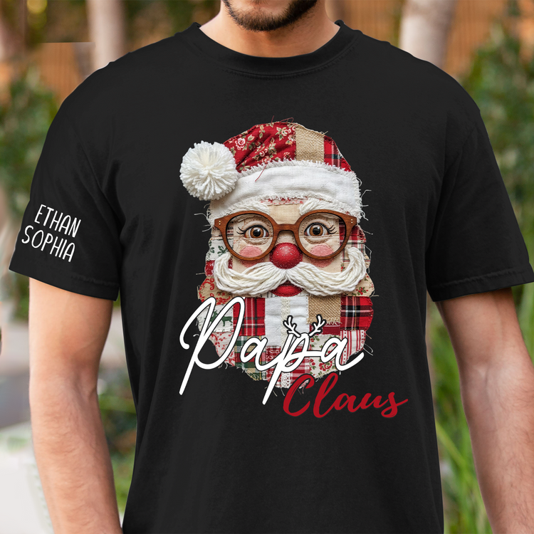 Merry Christmas Santa Patchwork Custom Name Gift for Papa And Kids
