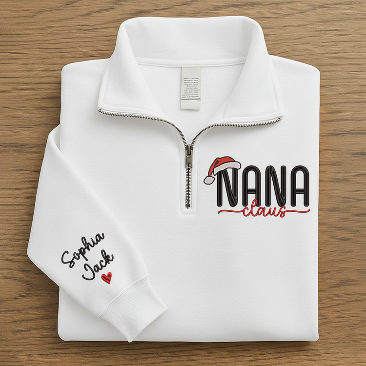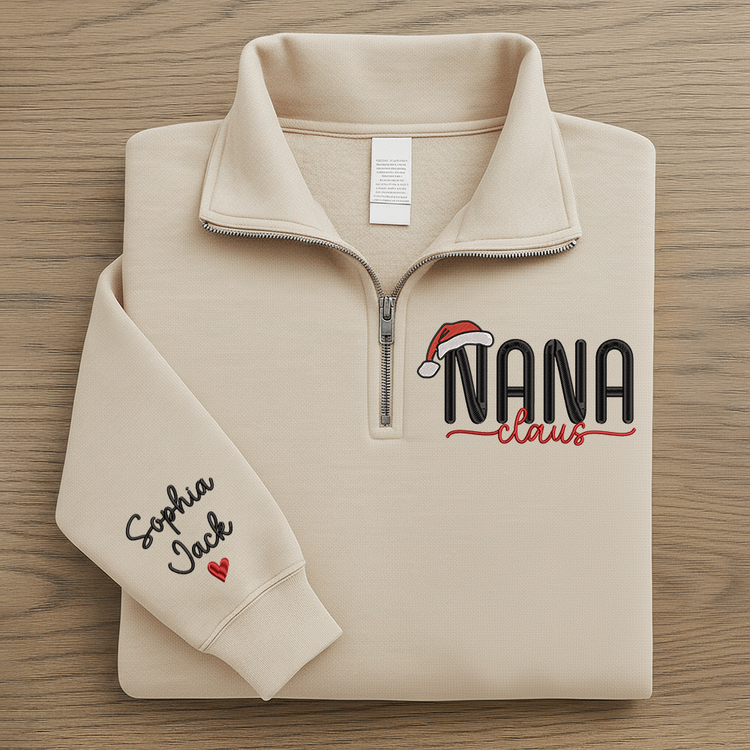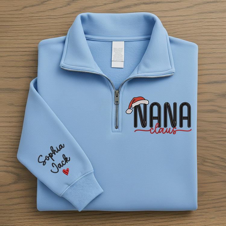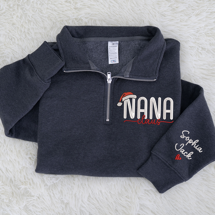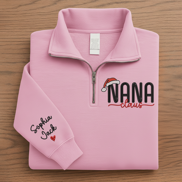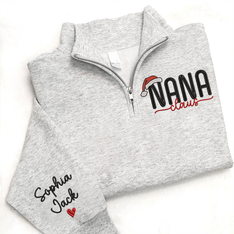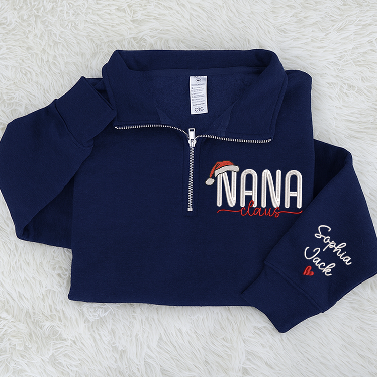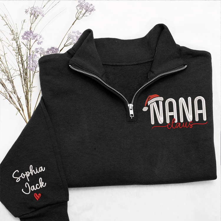 Nana Claus Christmas Sweatshirt – Personalized Embroidered Quarter Zip Pullover Holiday Gift For Grandma