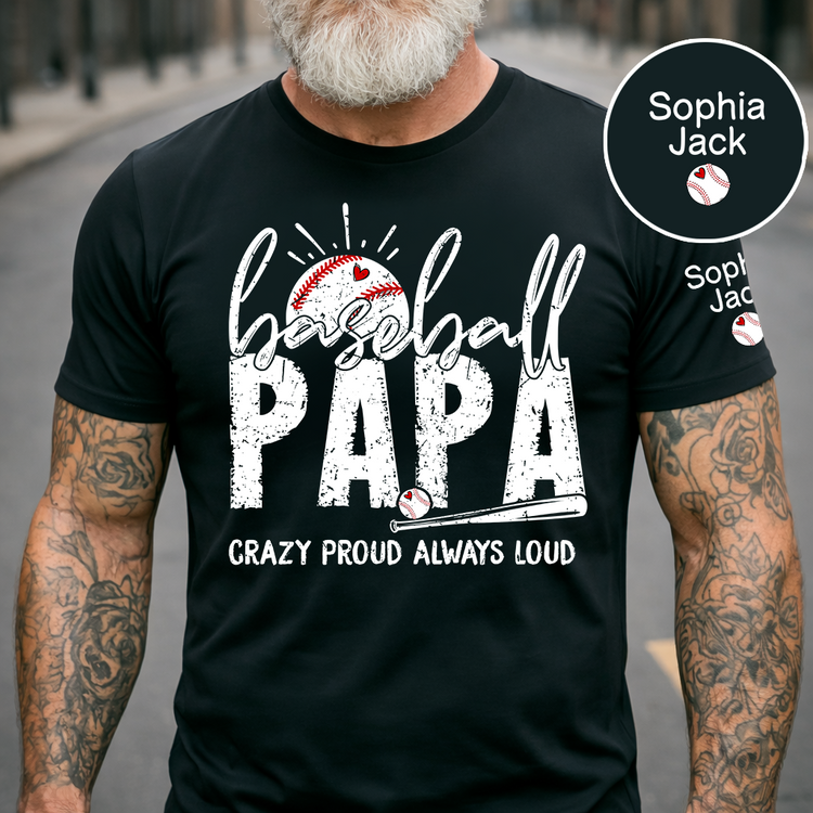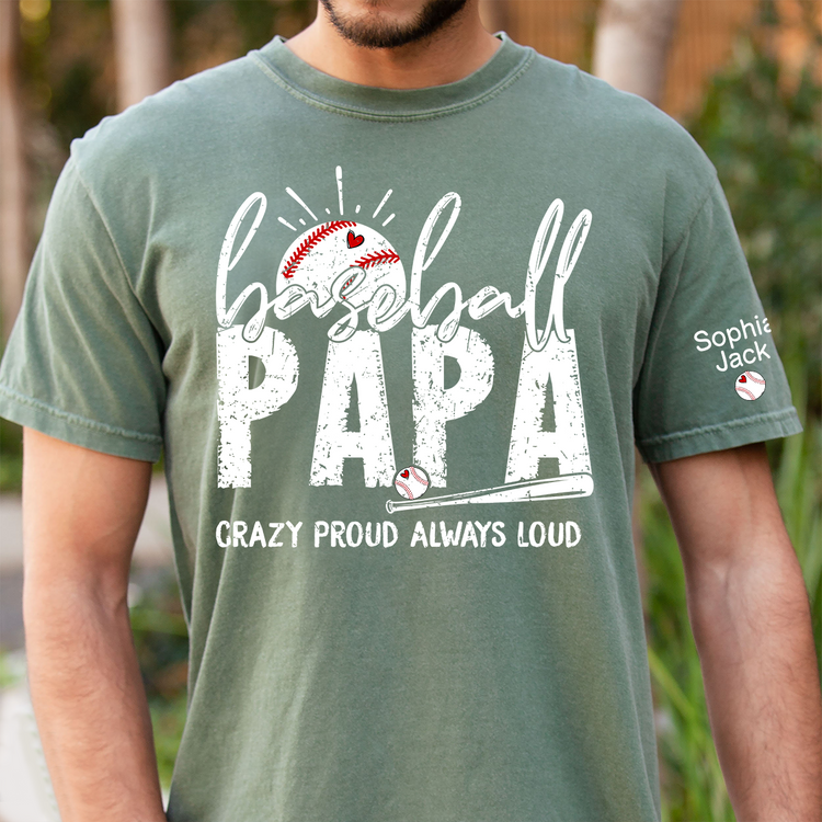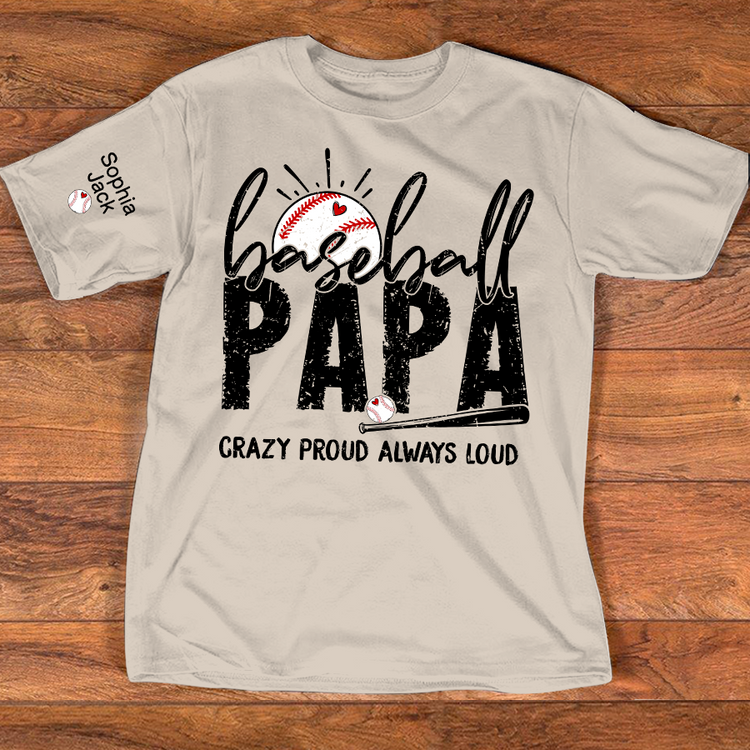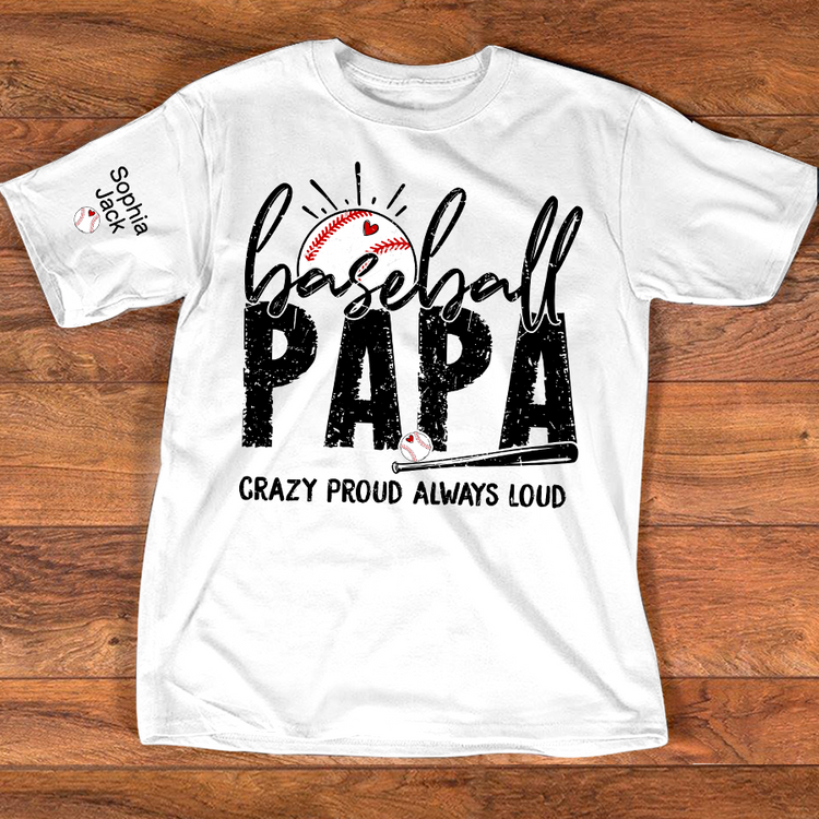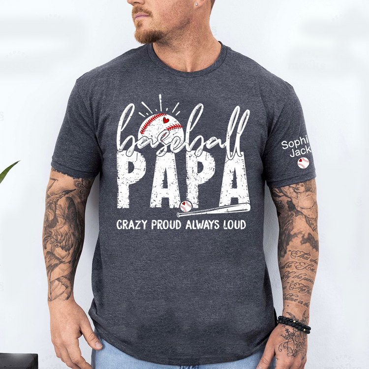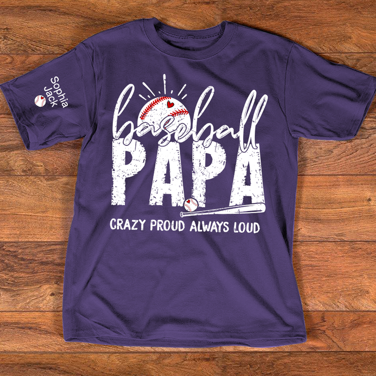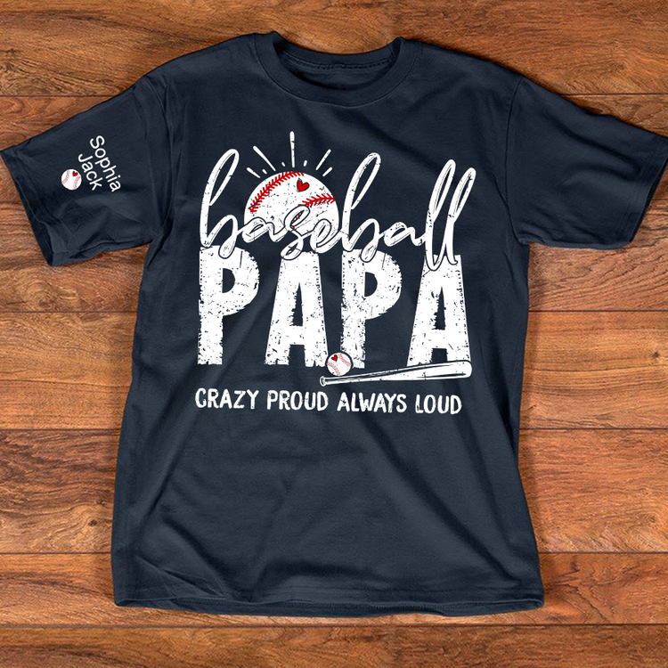 Personalized Baseball PAPA T Shirt, Custom Family Shirt, Crazy Proud Always Loud Design, Perfect for Baseball Fans