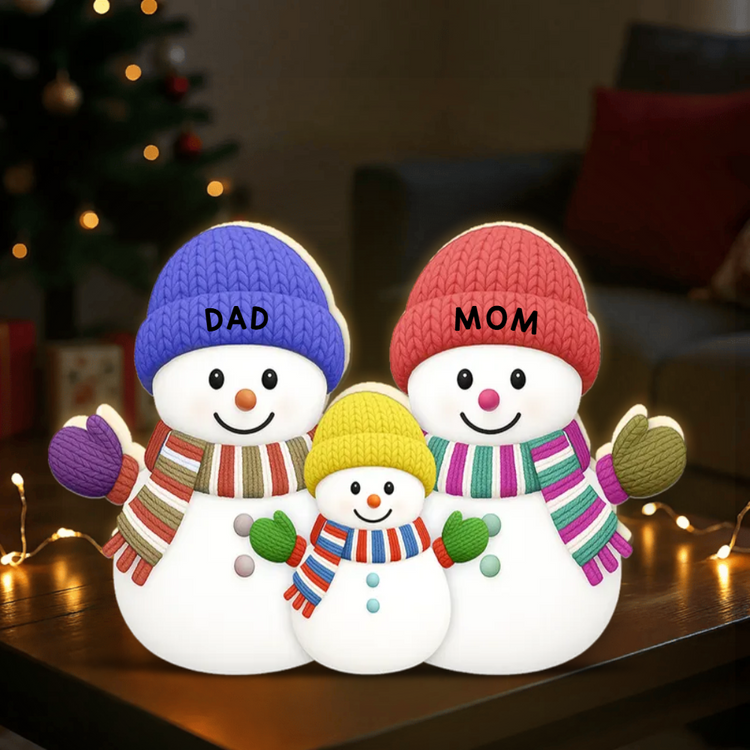 - Brighten your holiday season with a delightful snowman family light box that brings warmth, joy, and togetherness into your home. With its 3D effect and glowing design, this festive piece captures the magic of Christmas while celebrating your loved ones. Personalize it with names to create a keepsake that reflects your family’s spirit, making every moment more meaningful. Perfect for Grandma, Grandpa, and the little ones, this charming light box is a heartwarming way to decorate your home or surprise someone special.