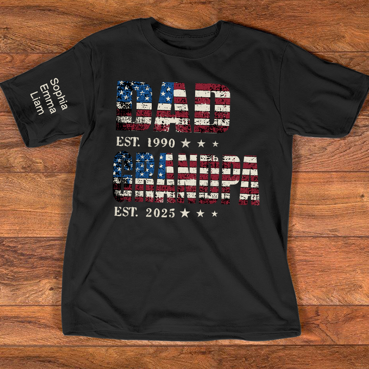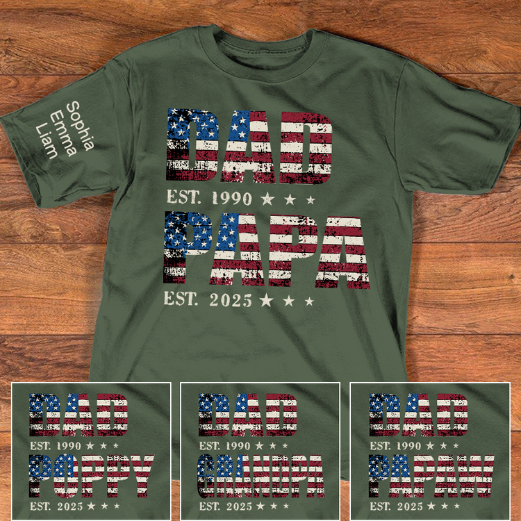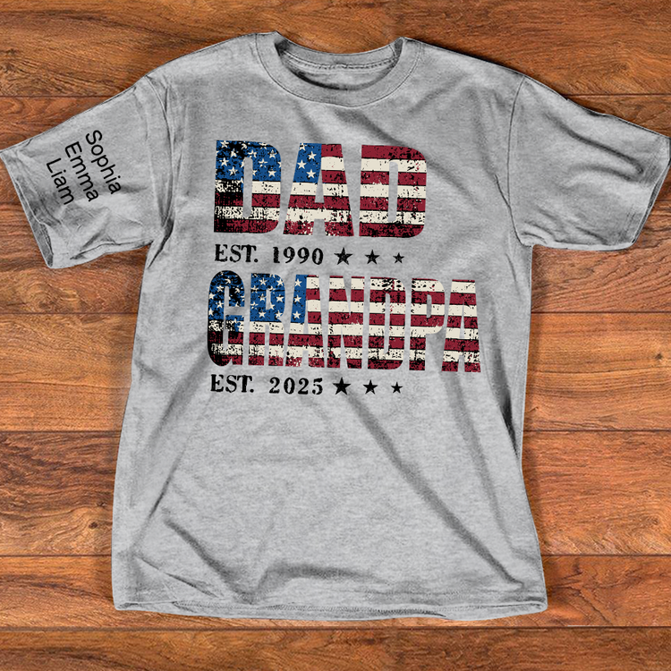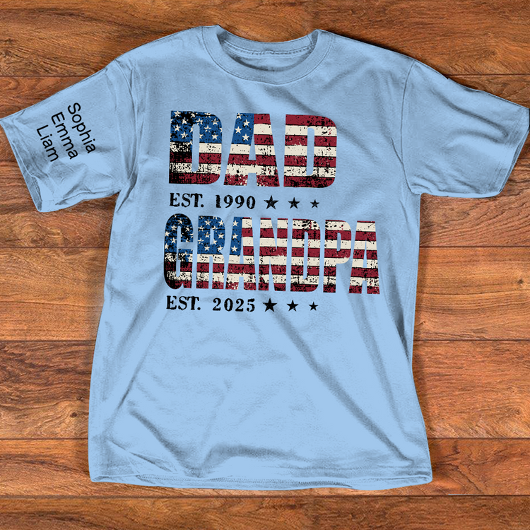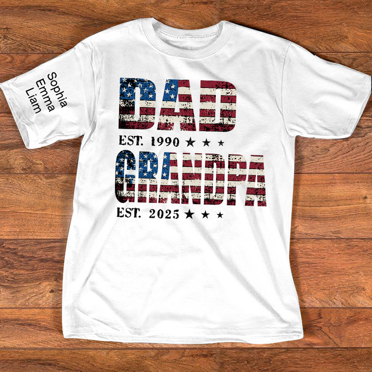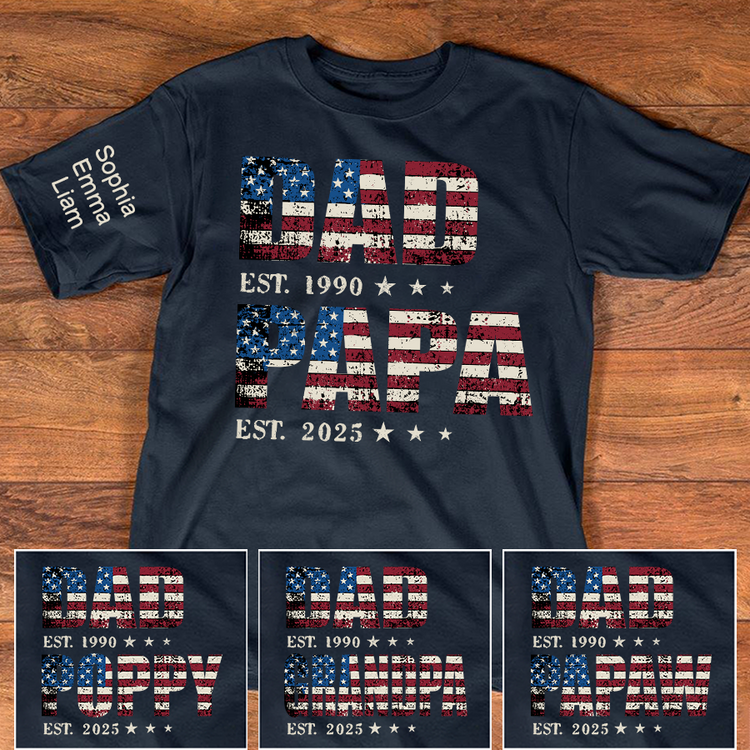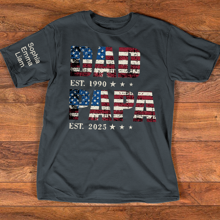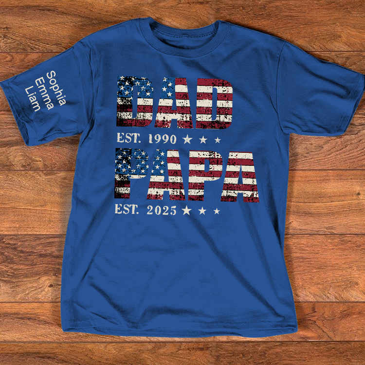 Personalized Dad Papa EST Shirt With Custom Names, Patriotic American Flag Family T Shirt