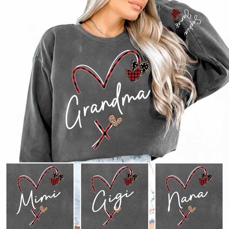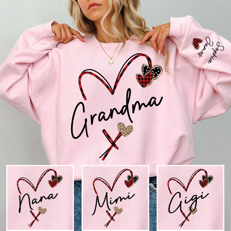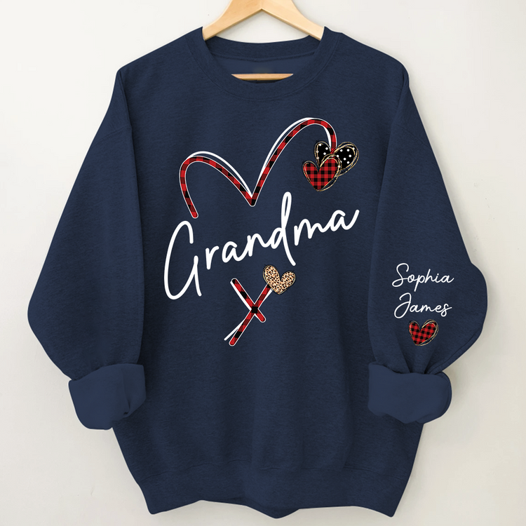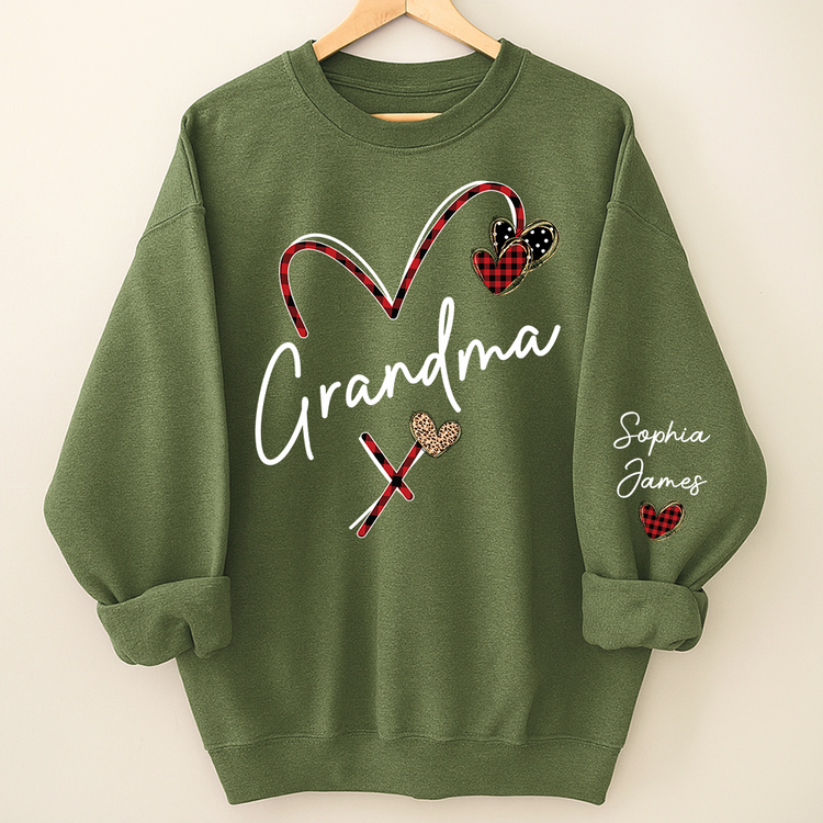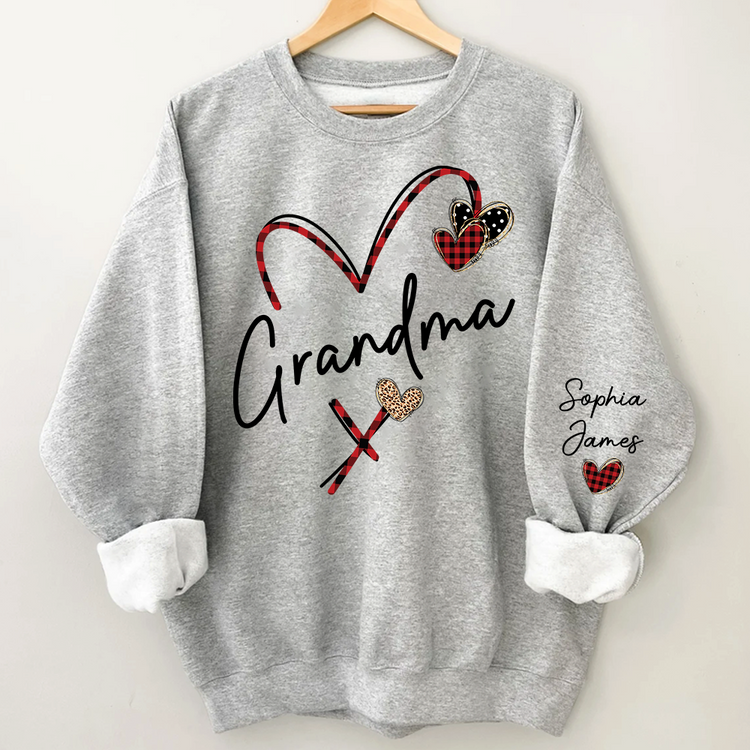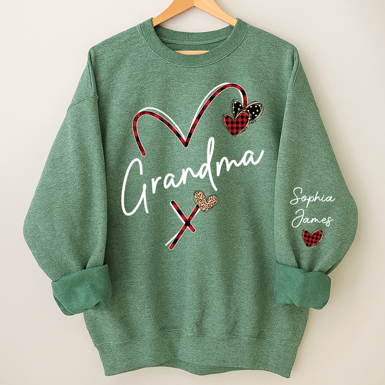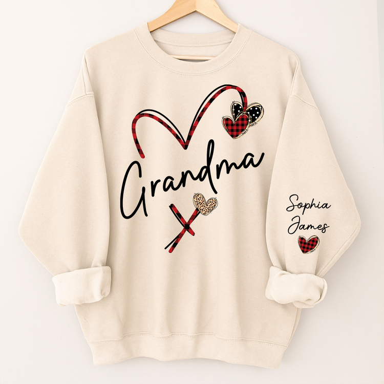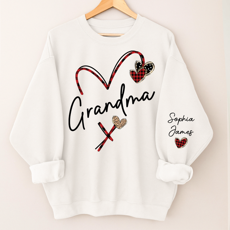 Personalized Grandma Sweatshirt With Grandkids Names, Custom Heart Design Grandma Crewneck Gift