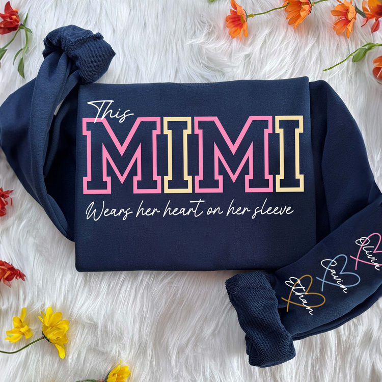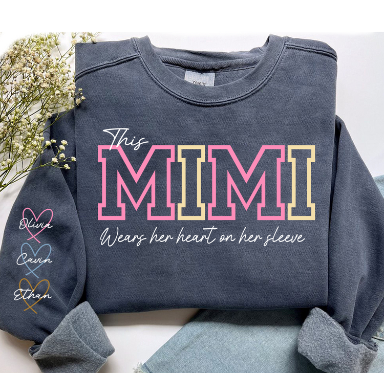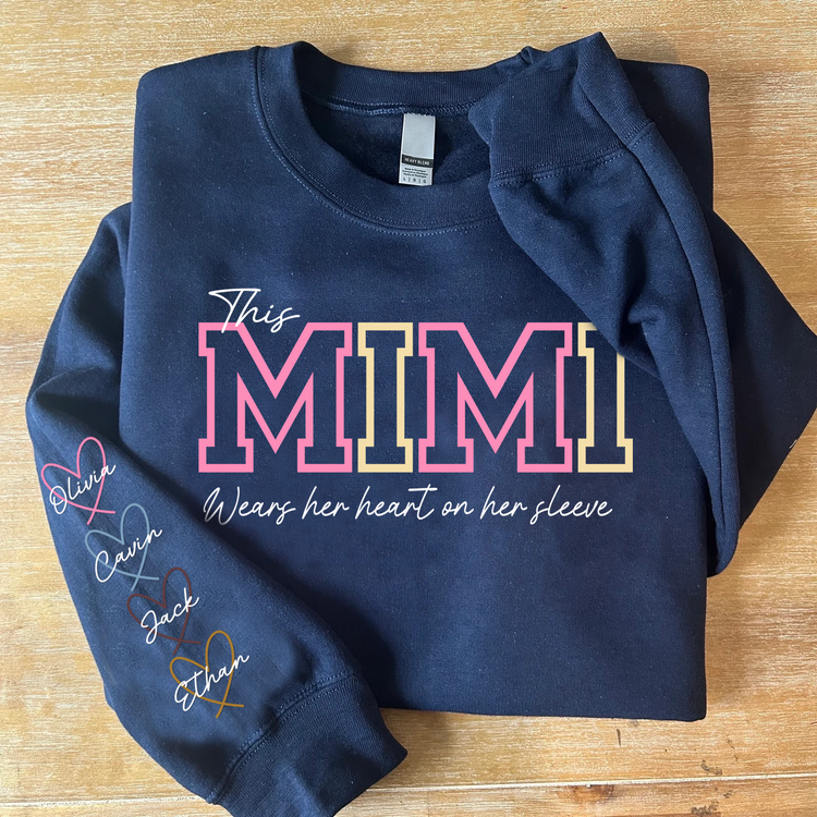Personalized Mimi With Grandkids Heart Sweatshirt, Custom Nickname And Grandkids Name Hoodie