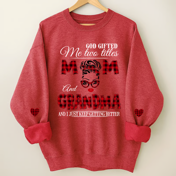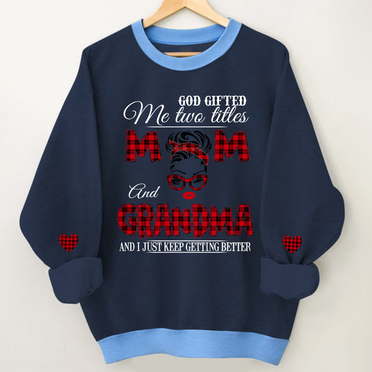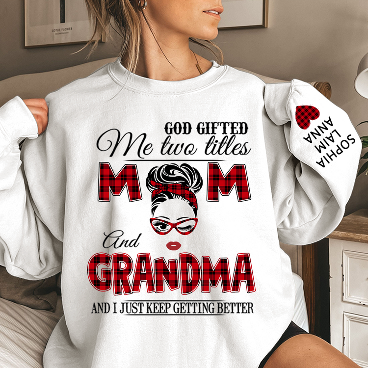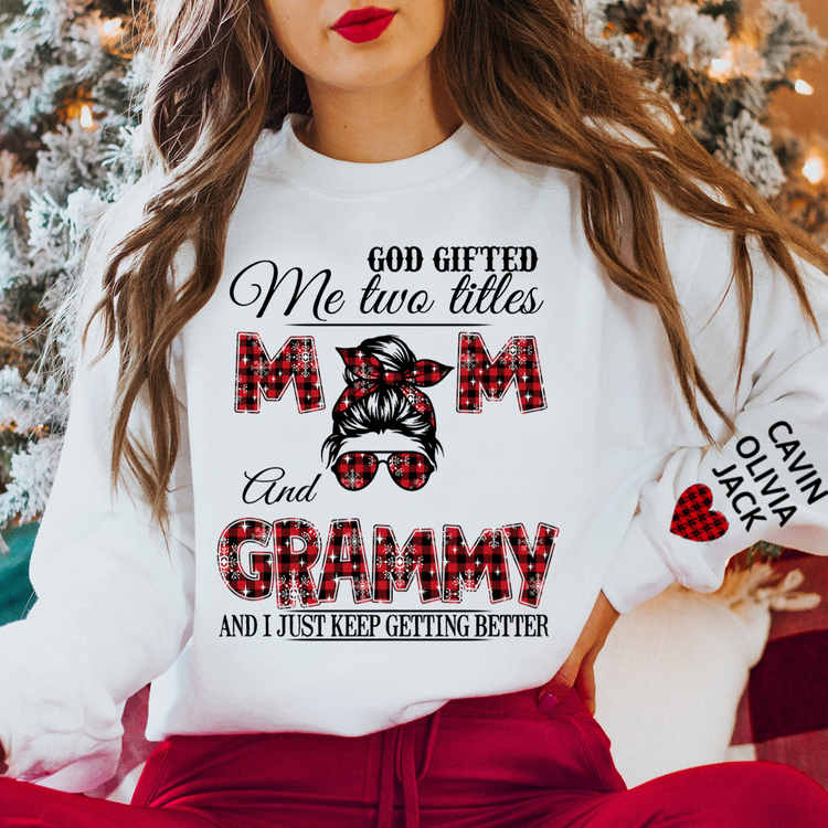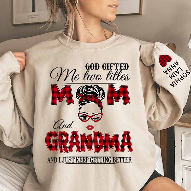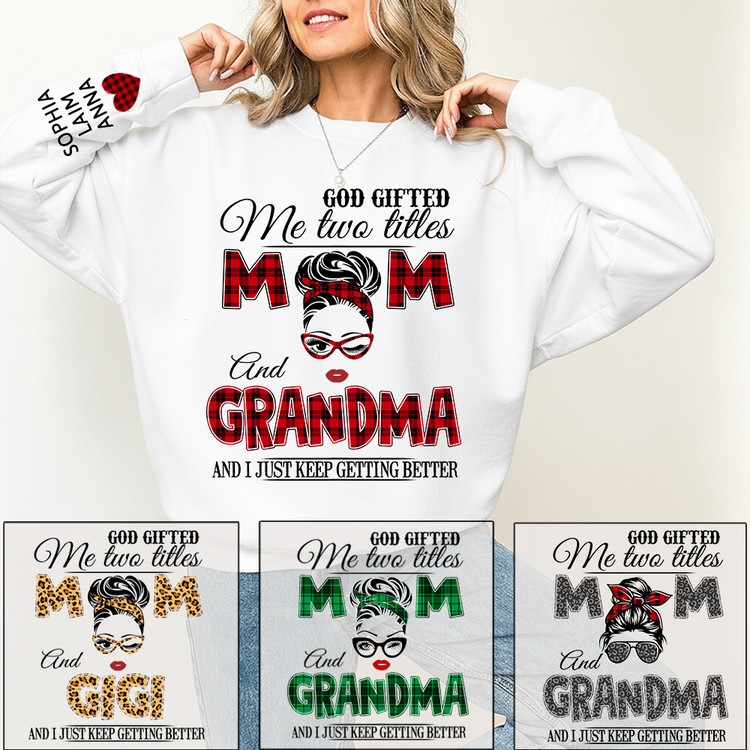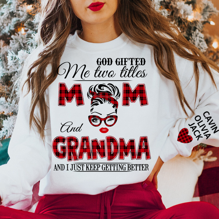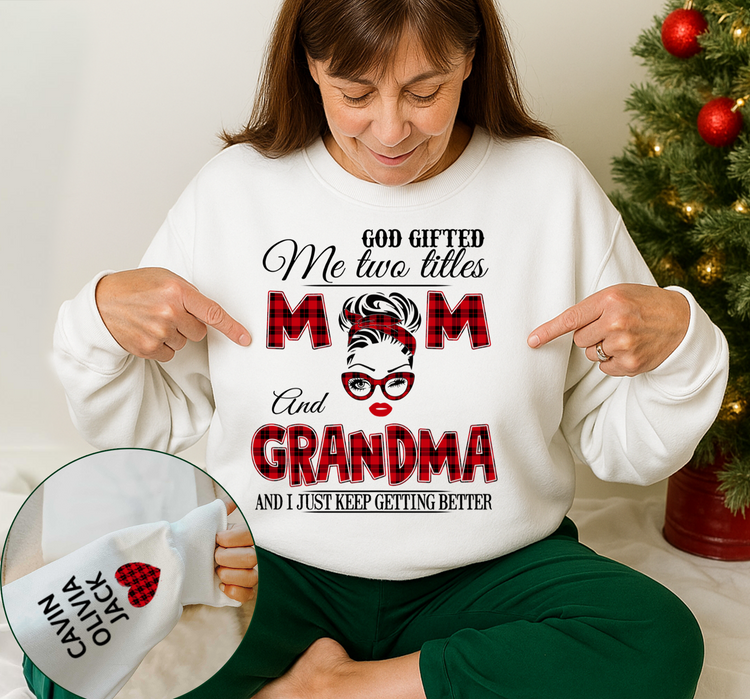 Personalized Mom & Grandma Sweatshirt – “God Gifted Me Two Titles” Custom Family Design, Perfect Christmas Gift for Her