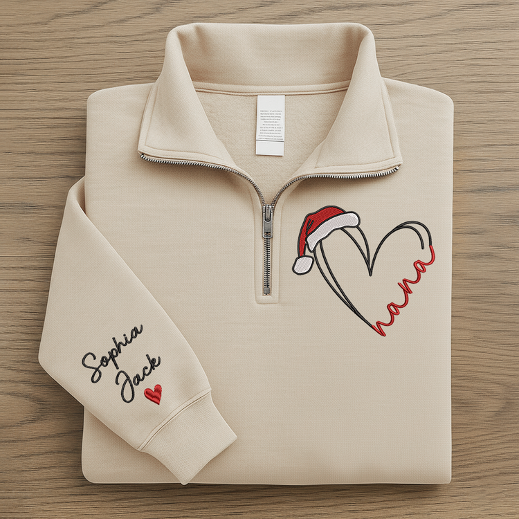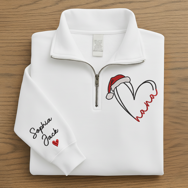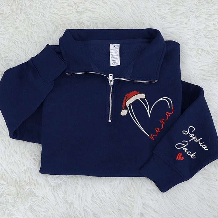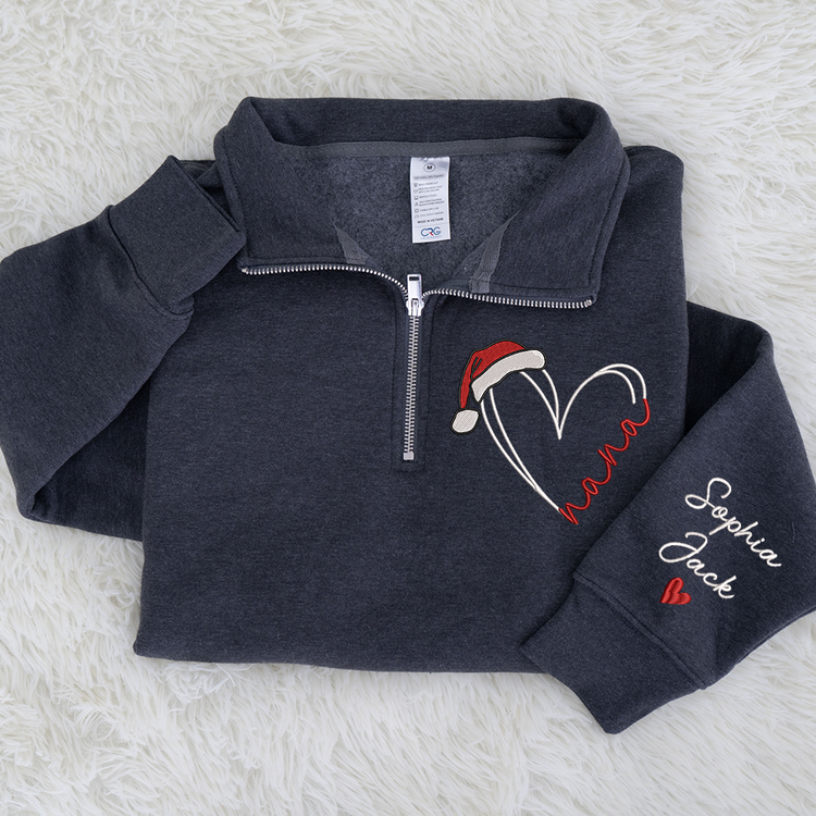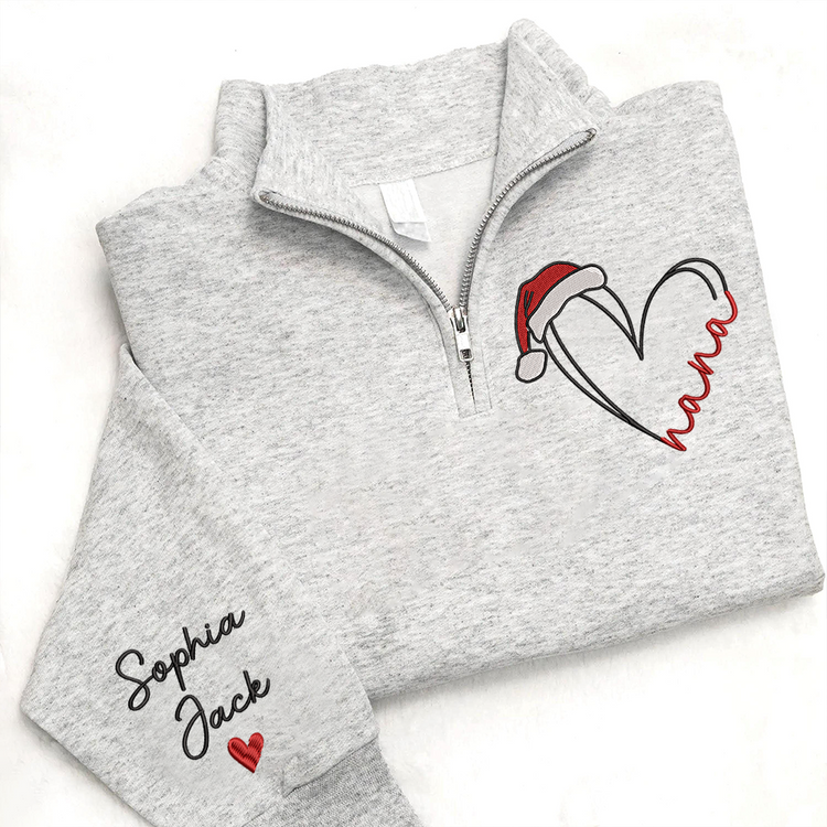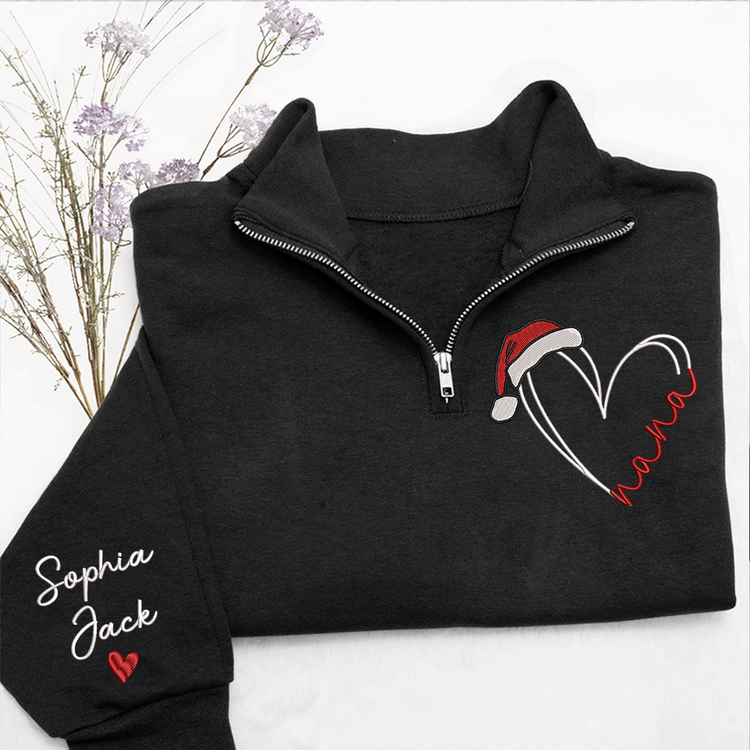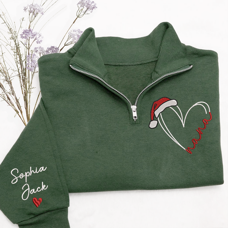 Personalized Nana Christmas Quarter Zip – Custom Embroidered Heart Sweatshirt With Grandkids Names Gift For Grandma