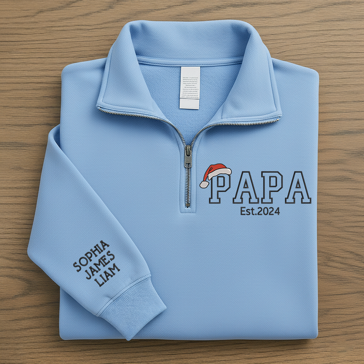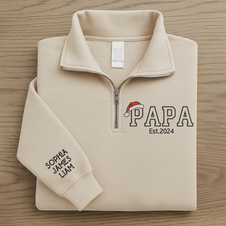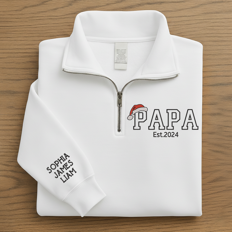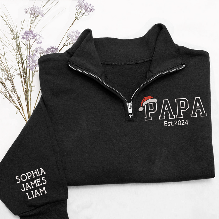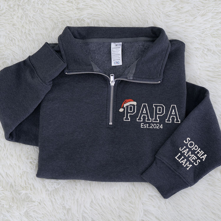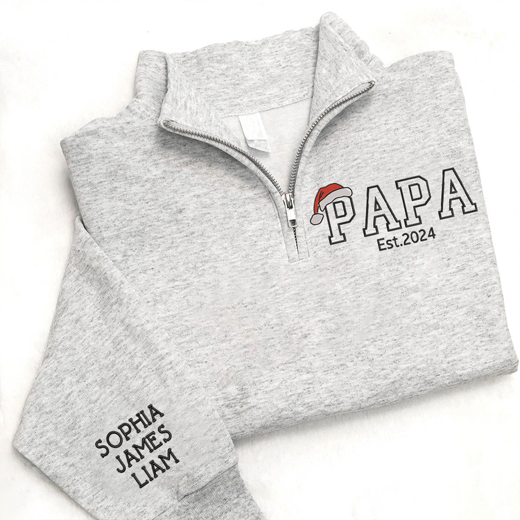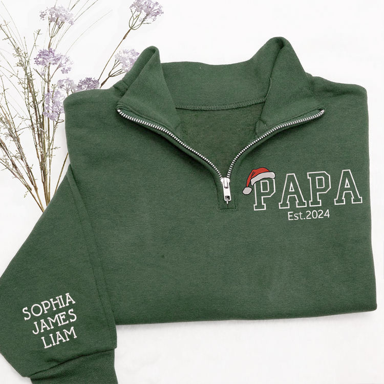 Personalized Papa Christmas Quarter Zip – Custom Embroidered Est Sweatshirt With Grandkids Names