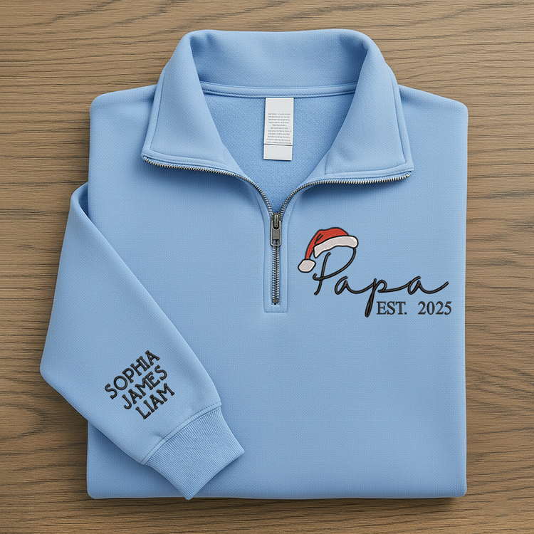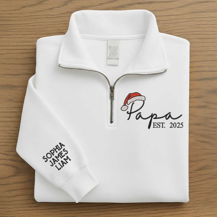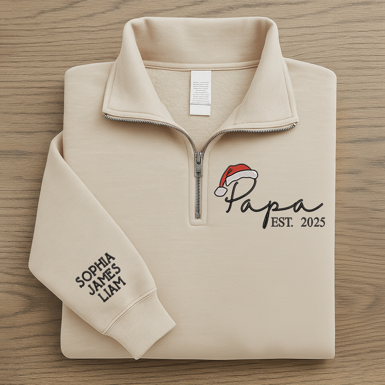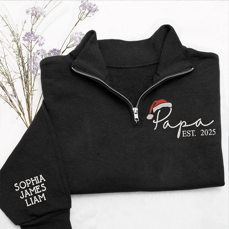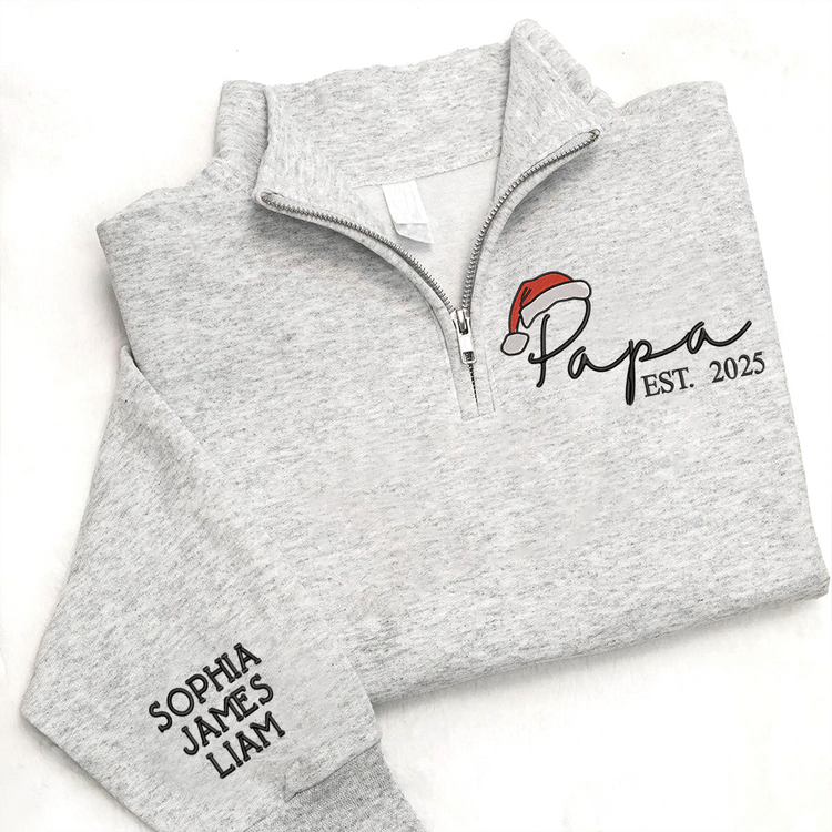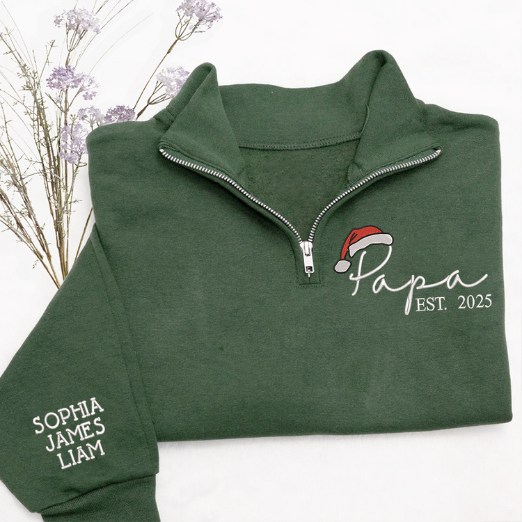 Personalized Papa Christmas Sweatshirt – Custom Embroidered Est. Year Quarter Zip Gift For Grandpa