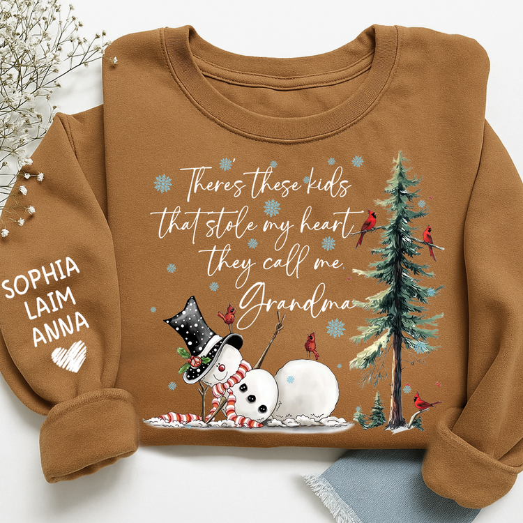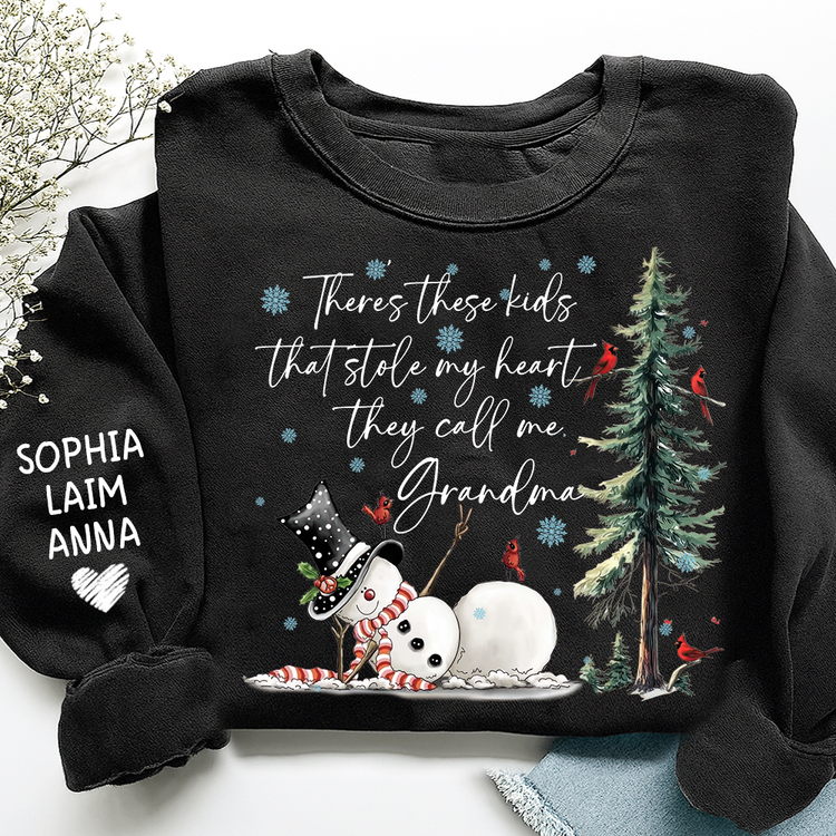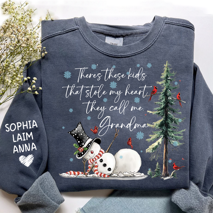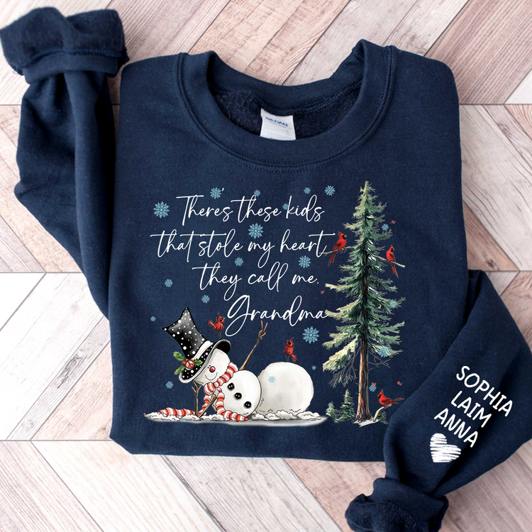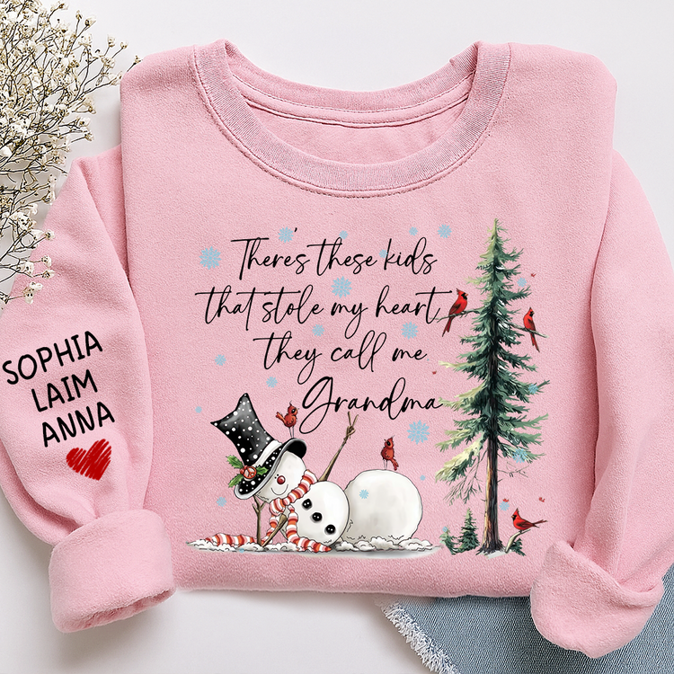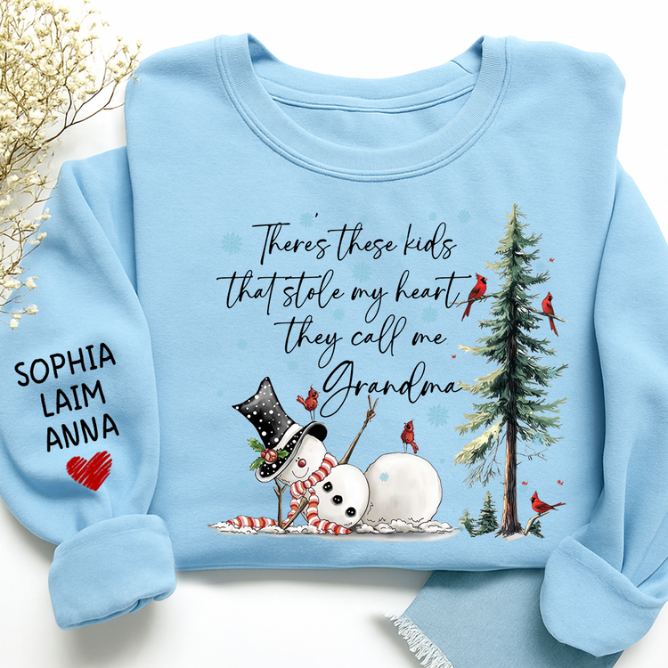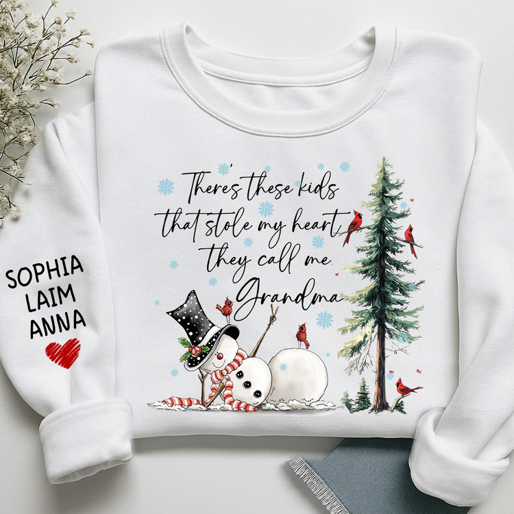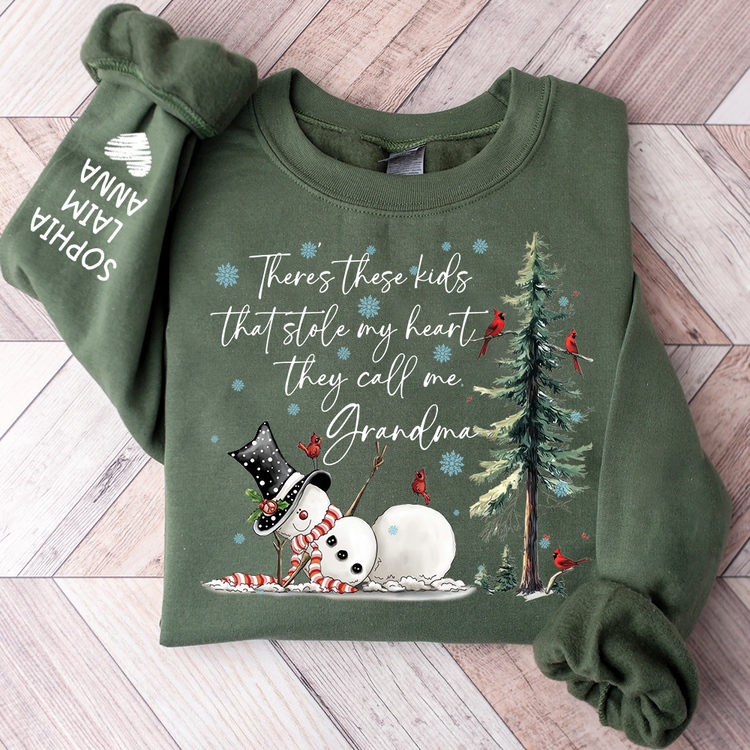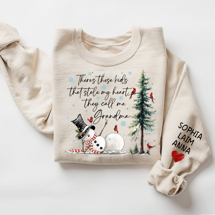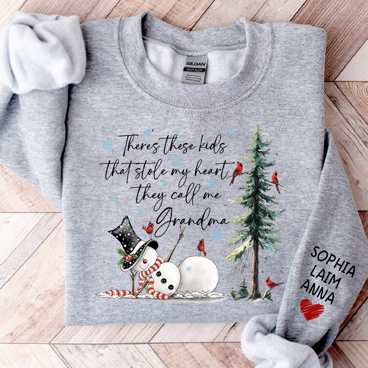 There’s These Kids That Stole My Heart They Call Me Grandma Sweatshirt, Personalized Christmas Shirt For Grandma And Kids