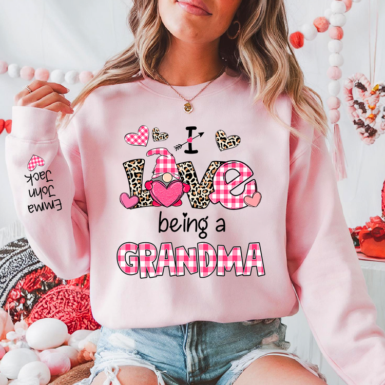 Valentine I Love Being a Grandma – Personalized Grandma Sweatshirt with Names